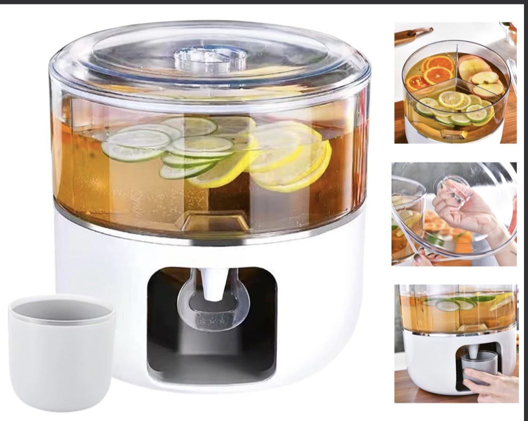 Upgraded Beverage Dispenser For Fridge,360° Rotatable Water Laundry Detergent Or Drink Dispenser For BBQ Picnic Pool Party And Social Events 1.5 Gallon White