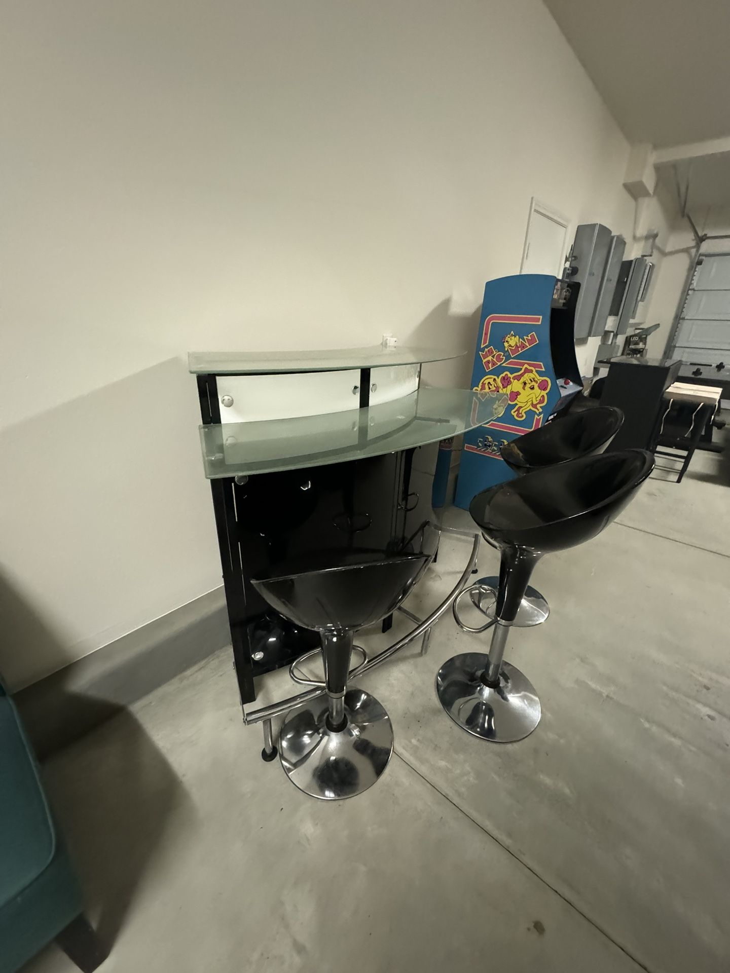 beautiful bar and 3 stools paid 999 for the bar and 300 for the stools asking 300 obo for the set or $250 for bar and 150 for the chairs