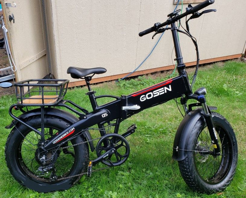 This is a Gosem Q5 folding fat tire E Bike. This is a great bike it goes about 33mph max and has a advertised 45 mile range this bike has 7 speeds, internal battery thats removable, small basket on back, and about 950 miles on the odometer and the batt holds a great charge. Everything is pretty tight and works well. Comes with charger and keys and thats about it. Asking $600 obo