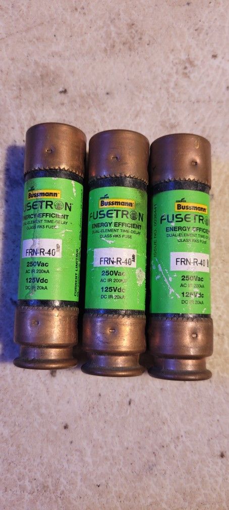 3 Bussmann Fusetron FRN-R-40 250V AC Fuse Used but great shape! I CONSIDER ALL REASONABLE OFFERS