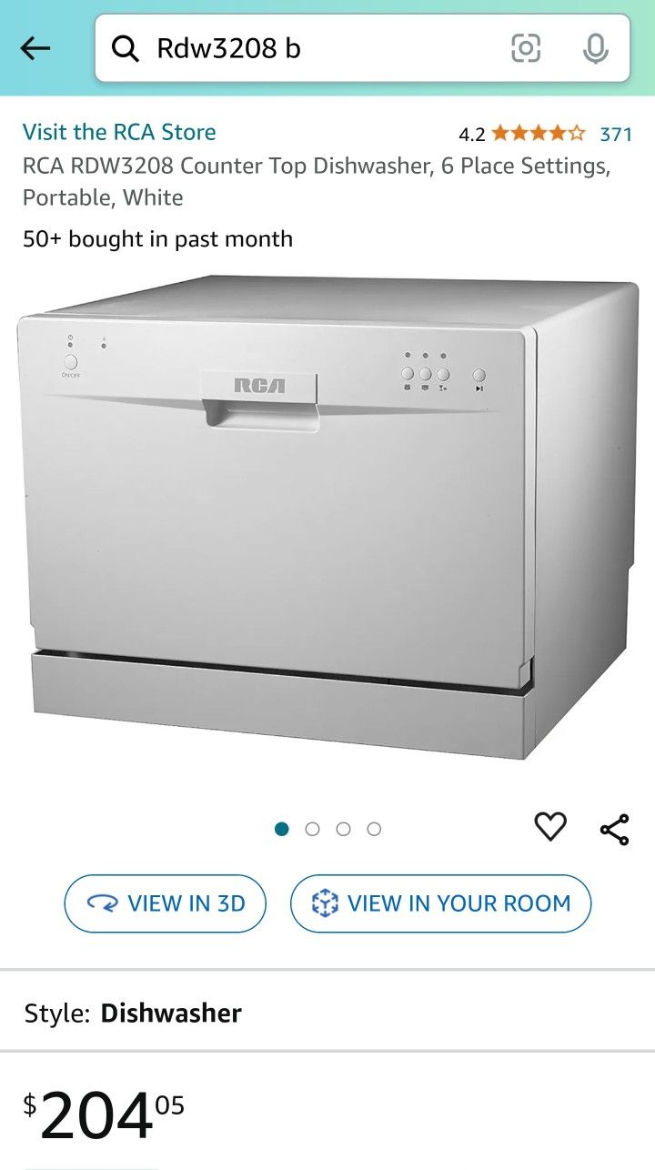 I have a BLACK RDW3208-B. RCA Dishwasher Fits 6 place settings!!!! Compact and Space saving!!!!!! Easy Installation!!!!! This Black color was a limited time purchase. Great for Studio Apt.'s and DORMS!!!!