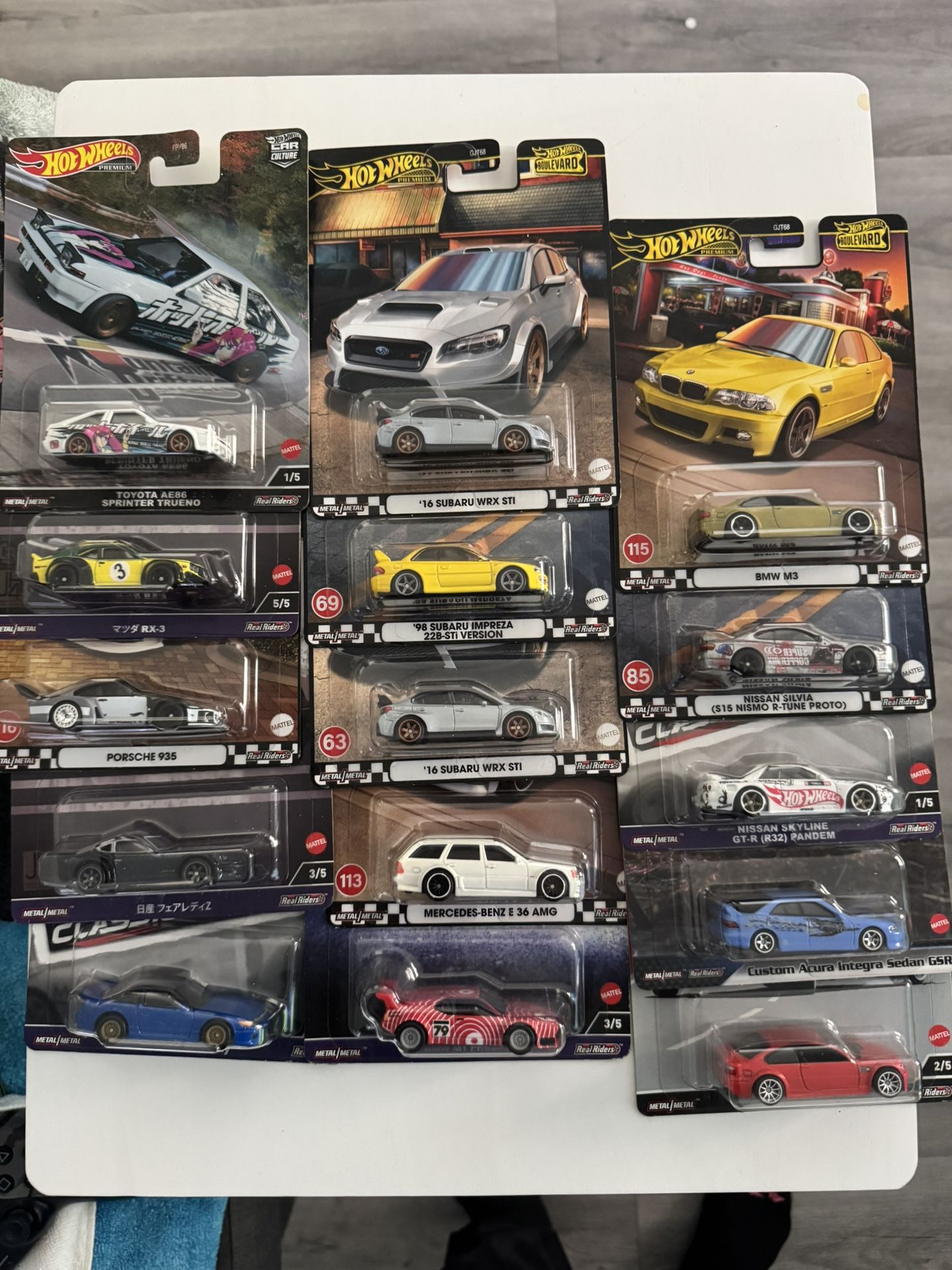 I have 15 premiums they run about 8-9$ retail , I’ll do $5 each if you buy them all . I’m starting to collect more m2 so wanna get rid of random ones I have left . No low ball offers . If just buying one or 2 it’s $7 each one besides skyline,integra, 180. Those I want $15 or $10 each if u buy 2