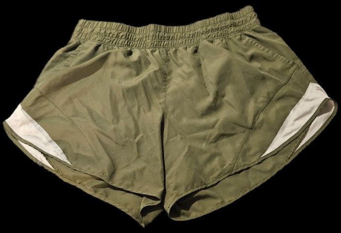 Comfortable olive green shorts with elastic waistband. Ideal for workouts and casual wear.