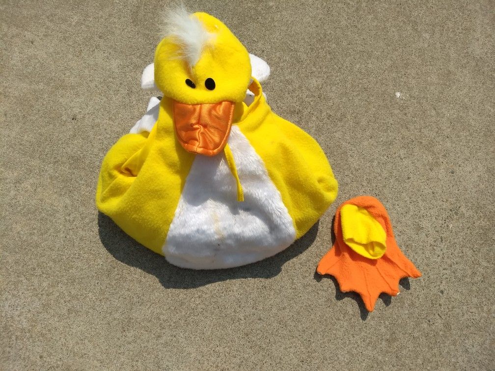 Children's Halloween costumes. Yellow duck fit 12 months to 2 years. Missing one of the feet. $5.00 Tigger from Disney's Winnie the Pooh size 36 months, fit 2 to 4 years old. $10.00. Wolverine fit 3 years to 5 years depending on child size. Includes Wolverine plastic claws and face mask. Shows some wear $5.