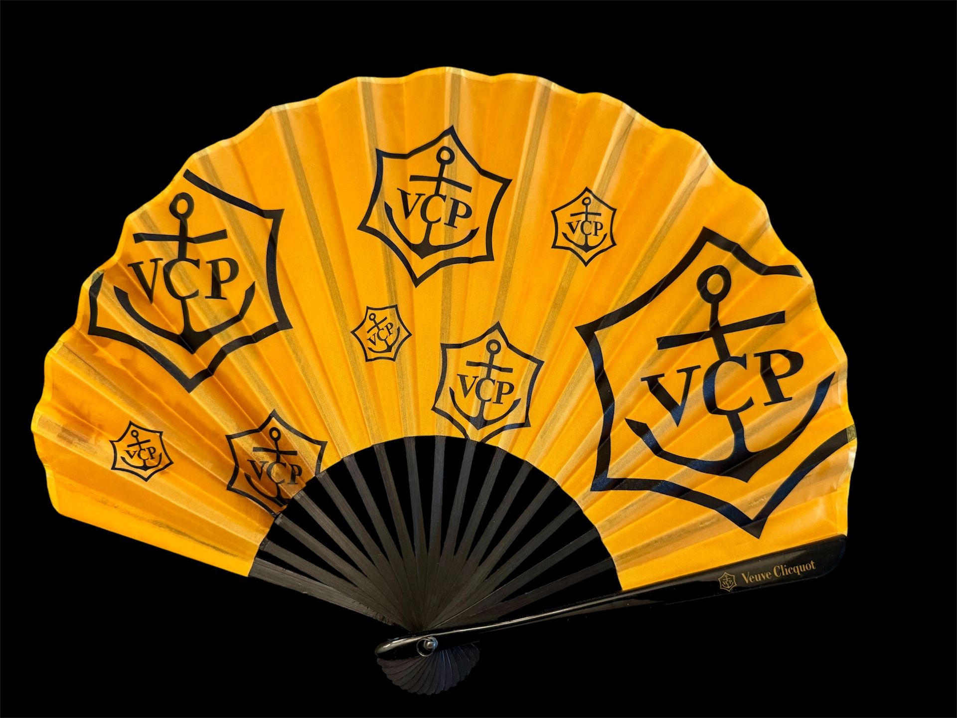 Vintage Veuve Clicquot Champagne Orange Folding Fan 10” Long Logo Handle & Fan. Excellent condition! Pick up 7th Ave & Indian School in Uptown Phoenix or I can ship. FAN MEASURES APPROX. 12 IN. WIDE X 10 IN. TALL WHEN OPENED.