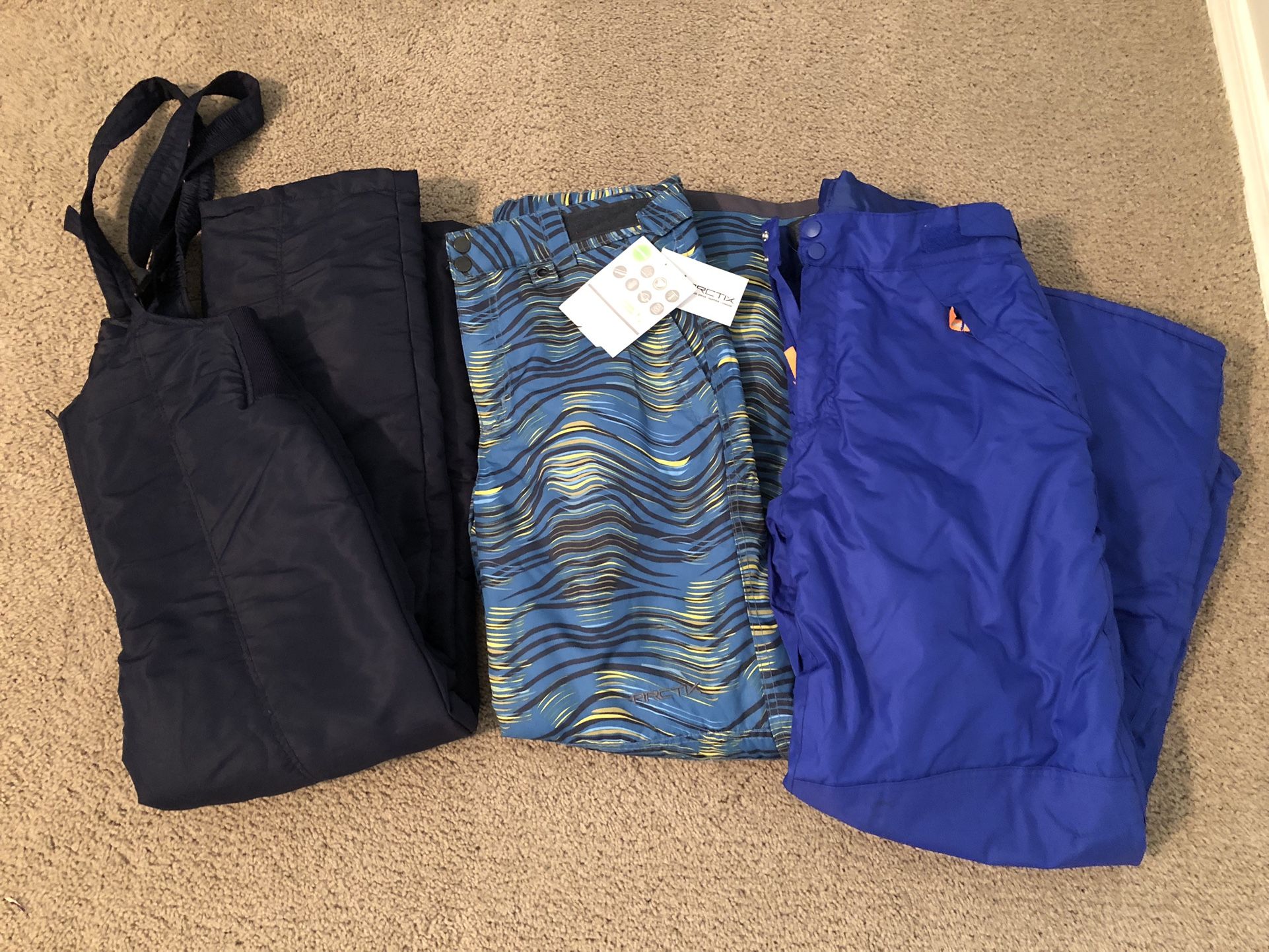 Two pairs of youth XL snow pants. 1 snow bib youth M $25 takes all. CASH only. Higley/ Elliot