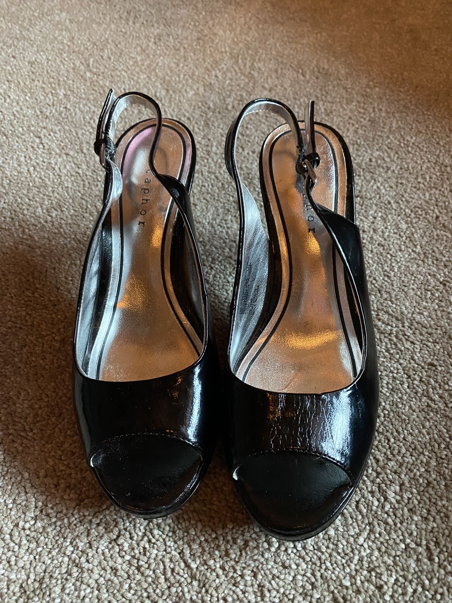 Black open toe heels sz 6