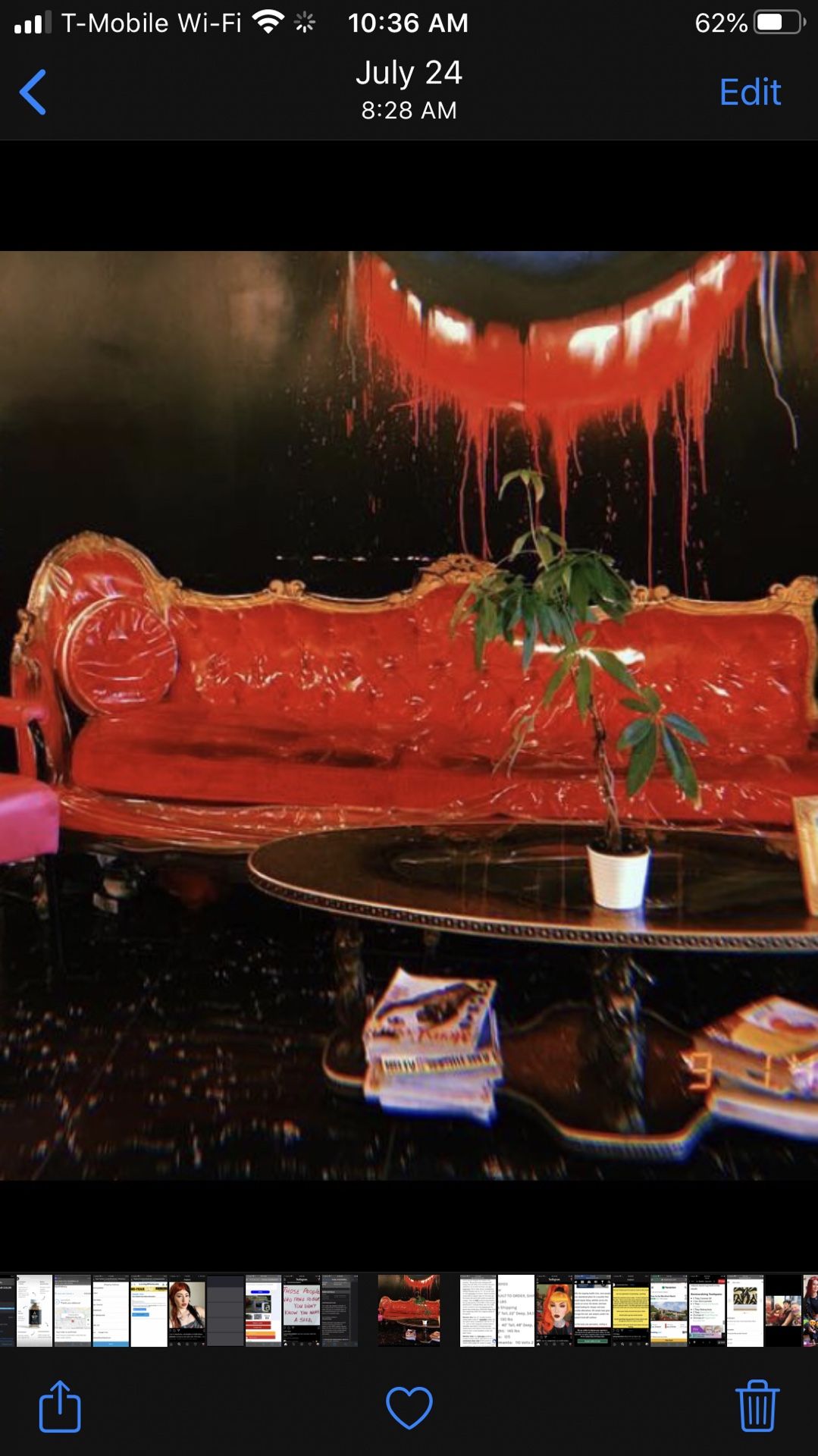 Red velvet vintage couch in perfect condition with plastic cover to prevent any damage