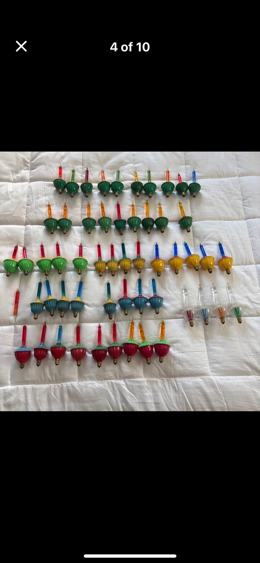 This is a large lot of 54 vintage Christmas bubble lights. Some are marked Noma and made in the USA. I have not tested these lights. I do not know if they work. I will ship these $12 extra