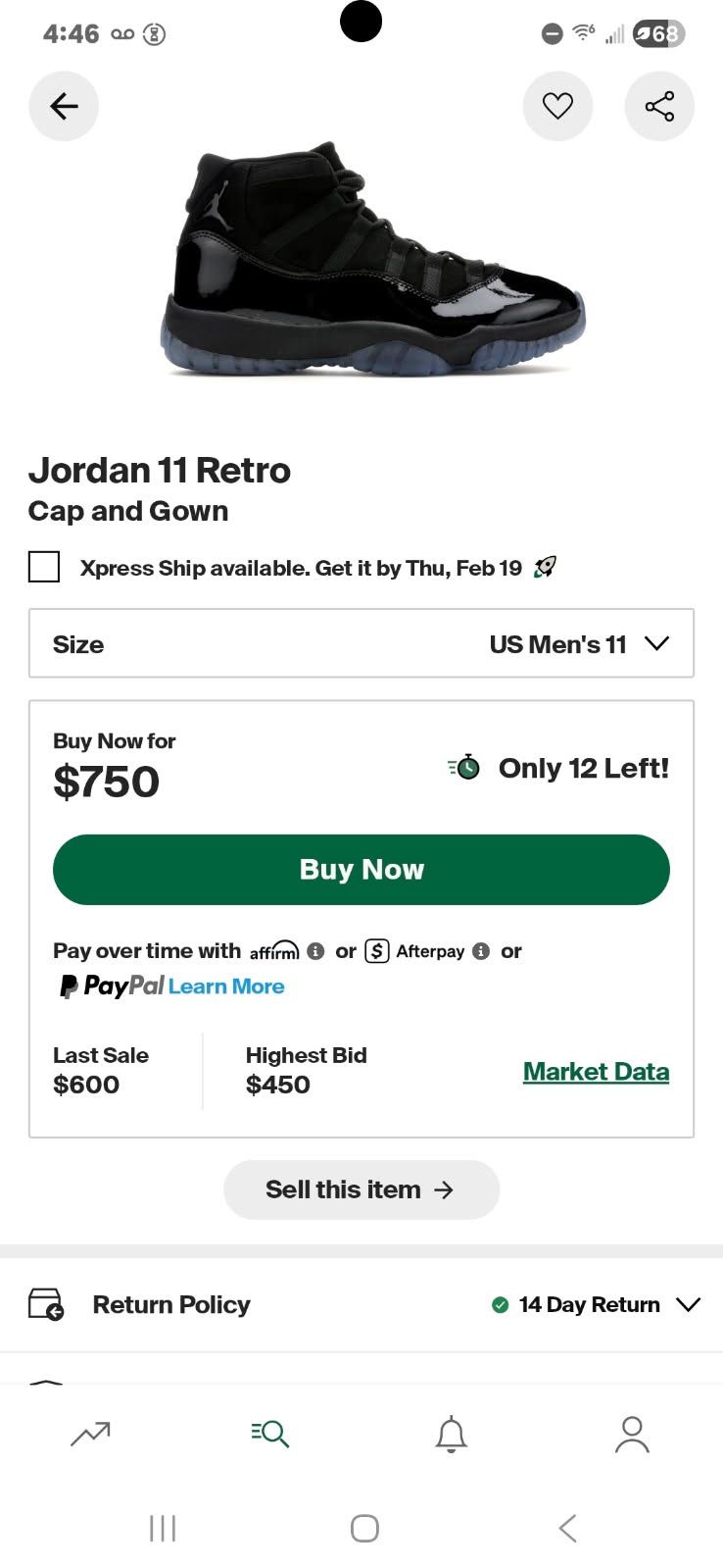 Real Jordan 11 retro cap and gown size 11 men’s US comes with extra laces and a picture never worn just bought the wrong size firm on price but negotiable dm me if interested! 😊
