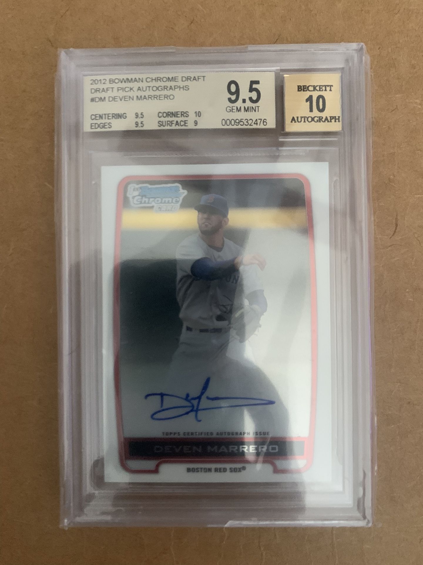 2012 Bowman Chrome Draft Pick Autographs #DM Deven Marrero Beckett 9.5 Autograph 10