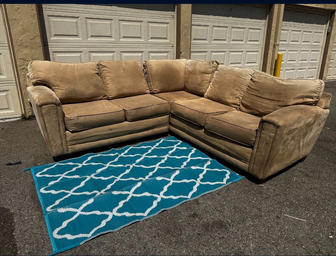 I have a very comfy tan sectional couch Some discoloration There are no damages No rips No tears No breaks Measurements: the right side is 7ft 11in and from left to right is 8ft π₯ FREE LOCAL DELIVERY π₯ ASKING $200 or best offer I
