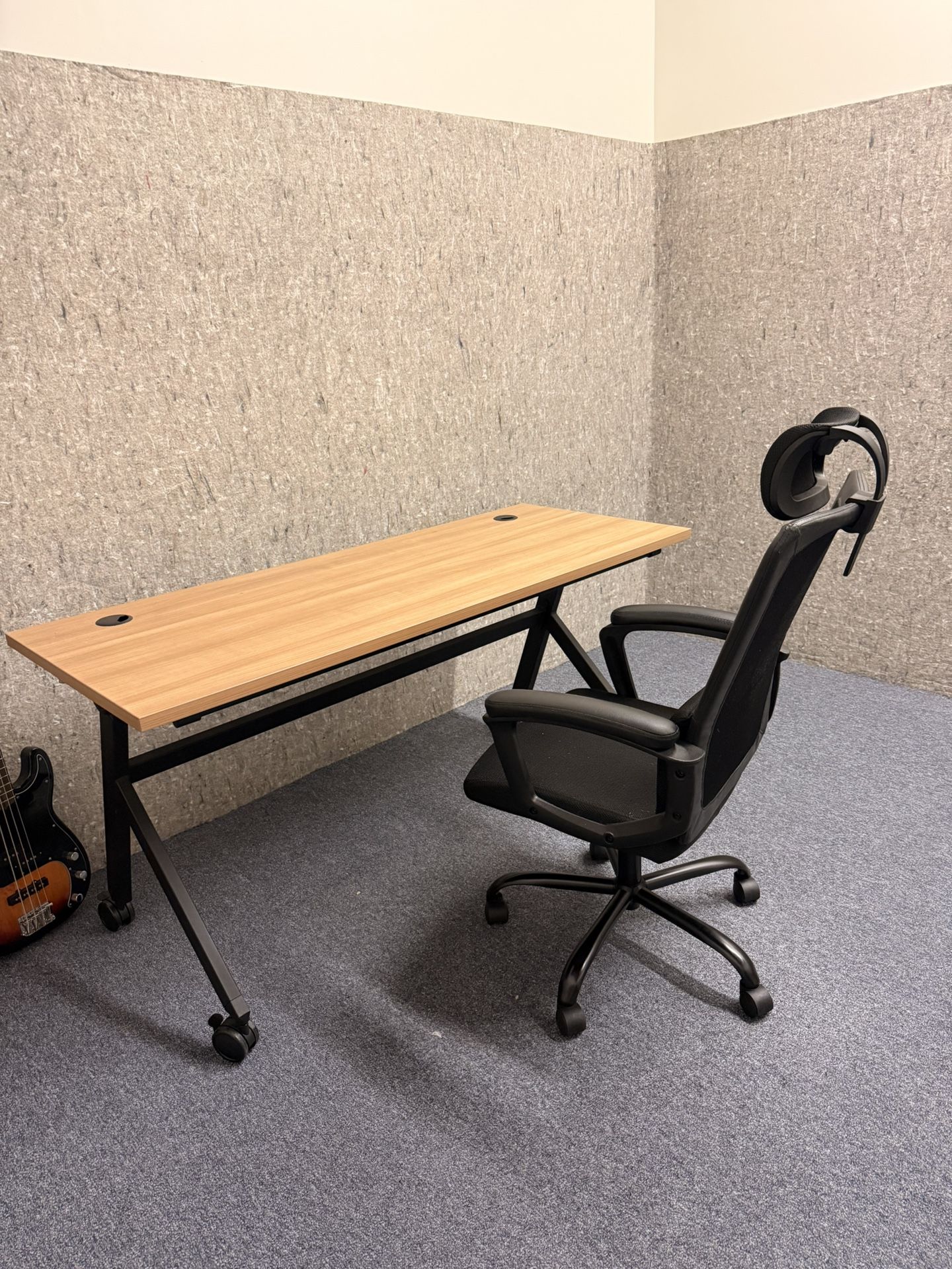 Excellent condition desk and chair Great workstation and sturdy On locking wheels so easy to move Has 2 holes for cables Desk Dimensions: 59" width 23.5" depth 29" height Can deliver locally for extra $ Pick up Van Nuys