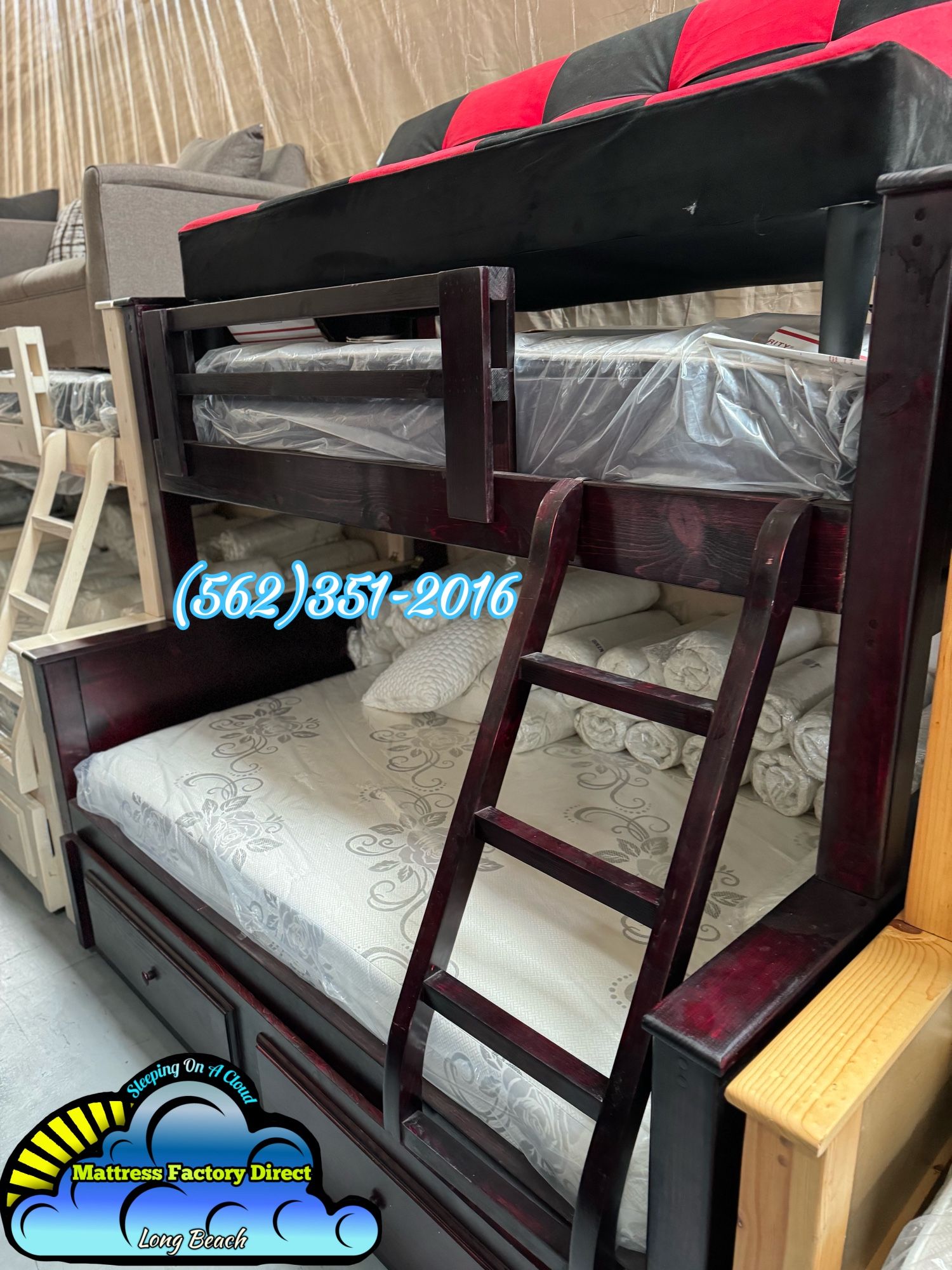 Twin Full Cherry Bunk Bed Trundle New Litera Cama