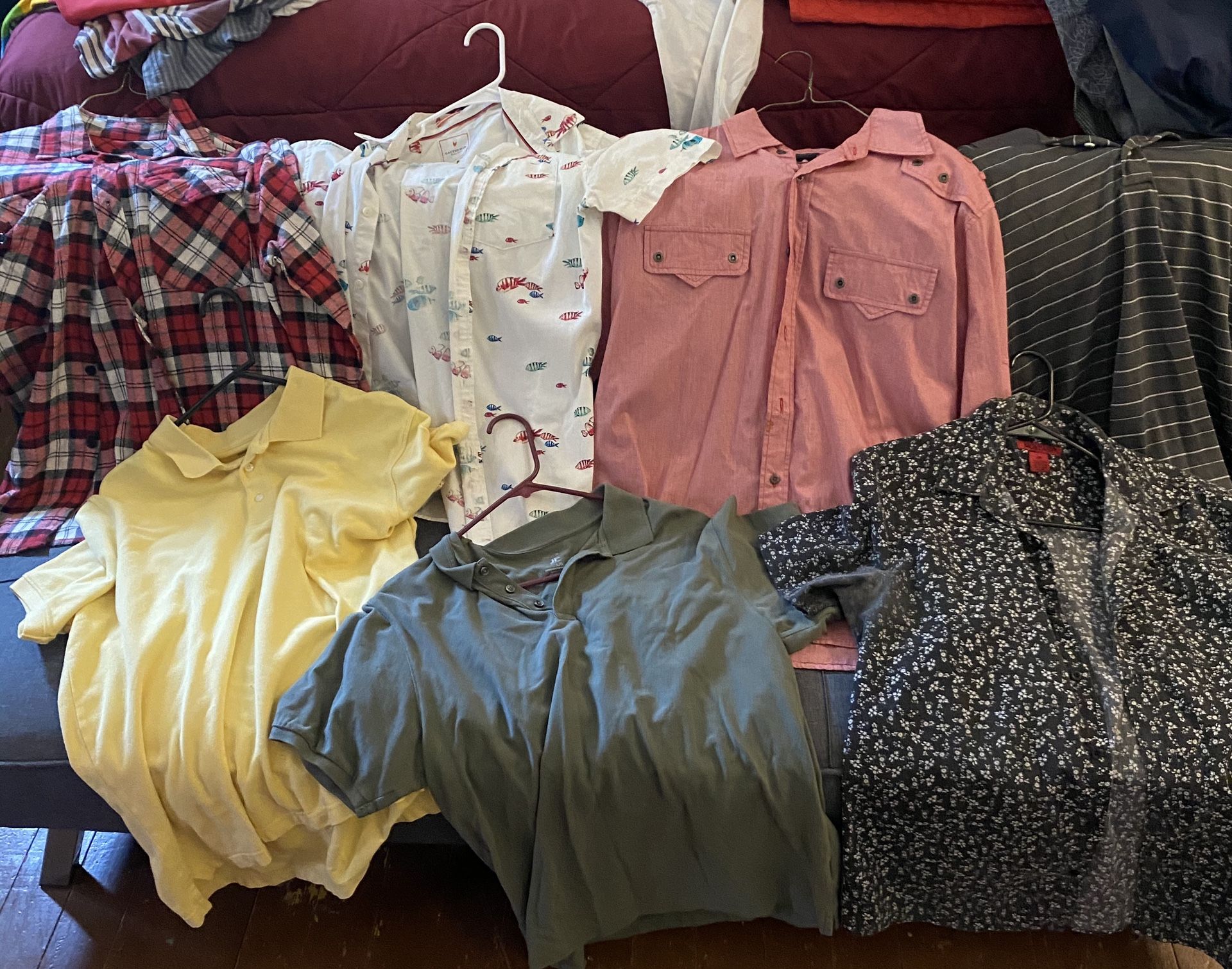 The shirts are in good condition. Most of the shirts are Mediums and a couple large’s.