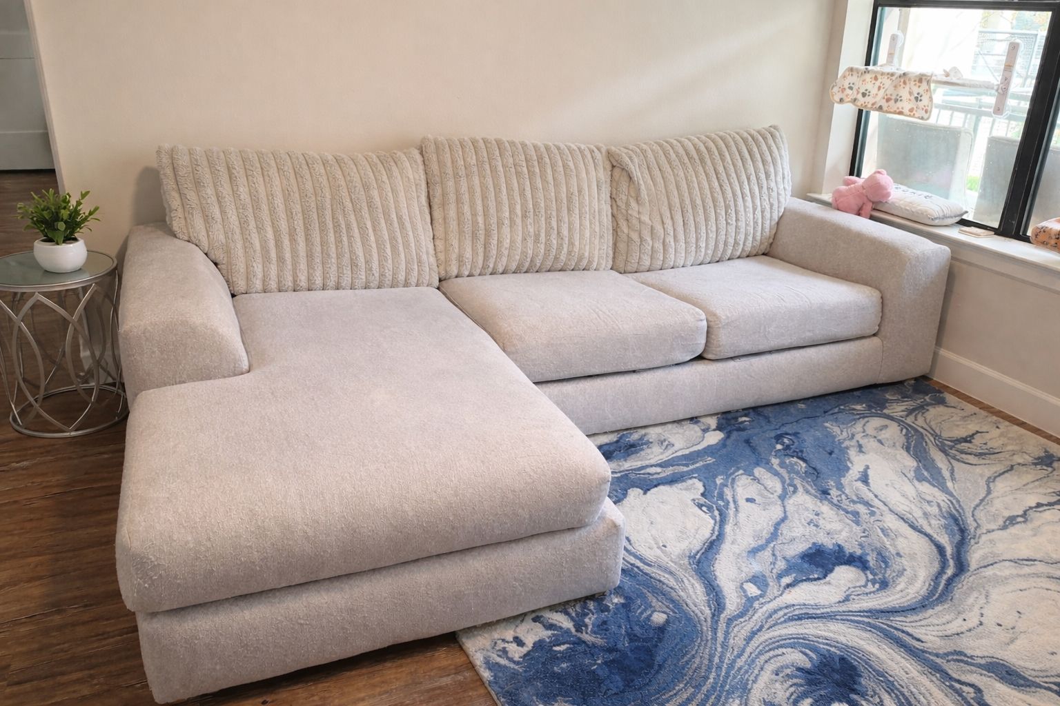 Left side chaise (when looking at the couch). Purchased from Rooms to go for $1999.00 Sold as is and must pick up.