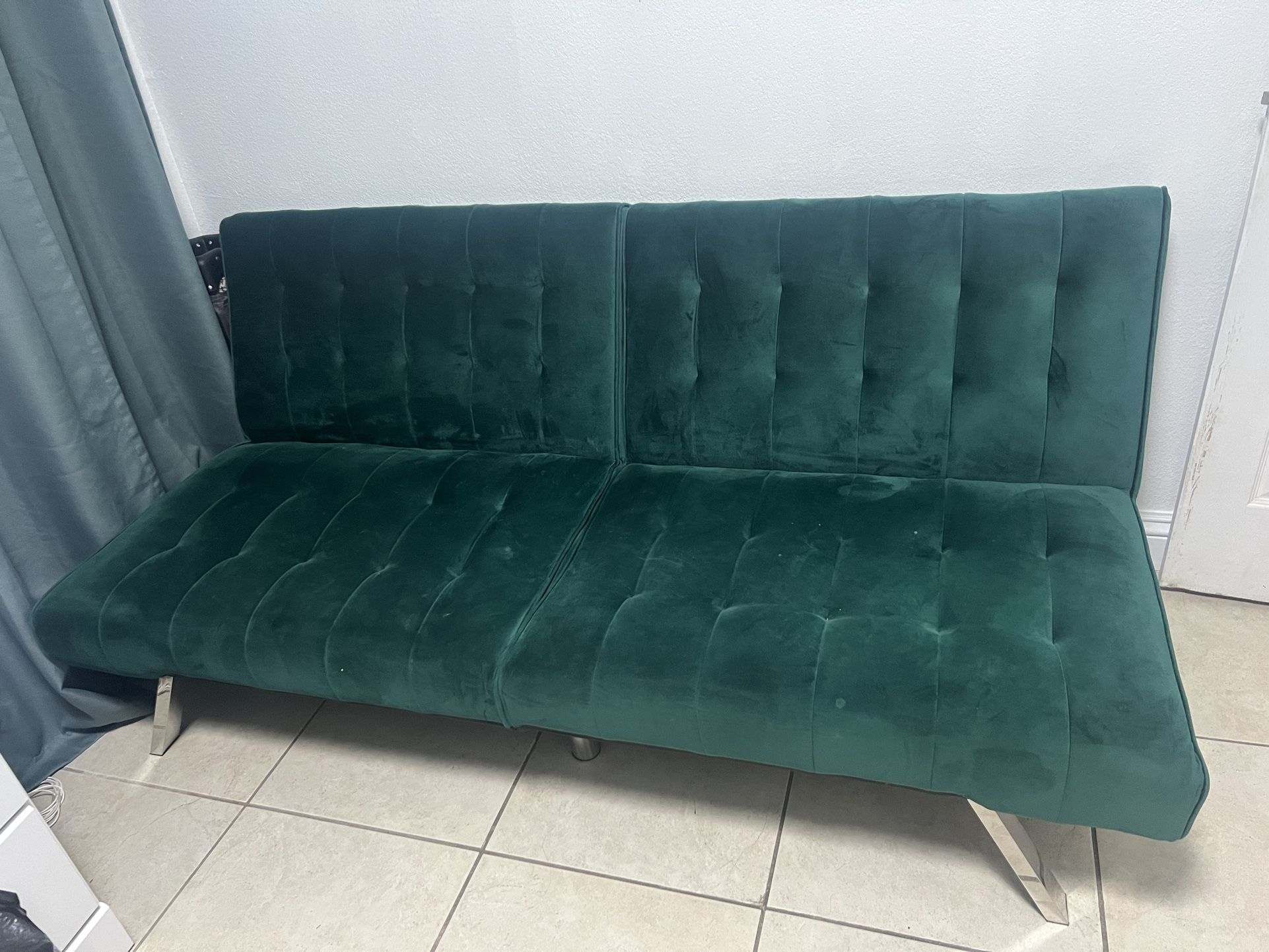Like New futon barely used It’s a deeper emerald green color in person