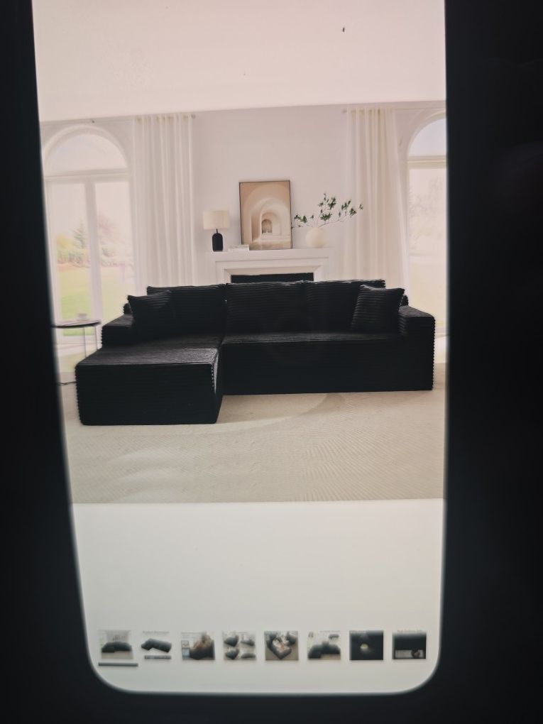 Must Go. Still in box. Black corduroy sectional sofa fluffy cloud L shape with memory foam. Best offer $250.00