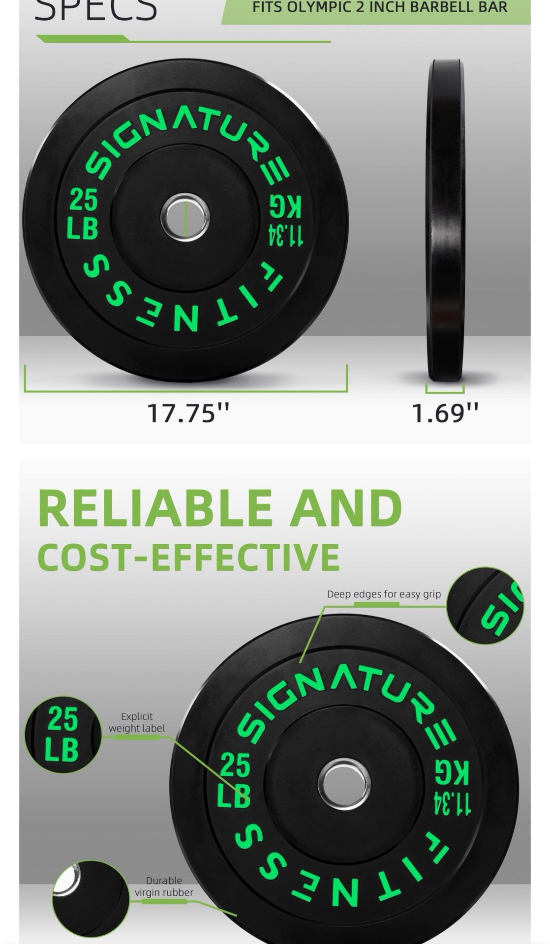 2" Weight Plates for Strength Training & Weightlifting, Pair Of 25 Lbs.