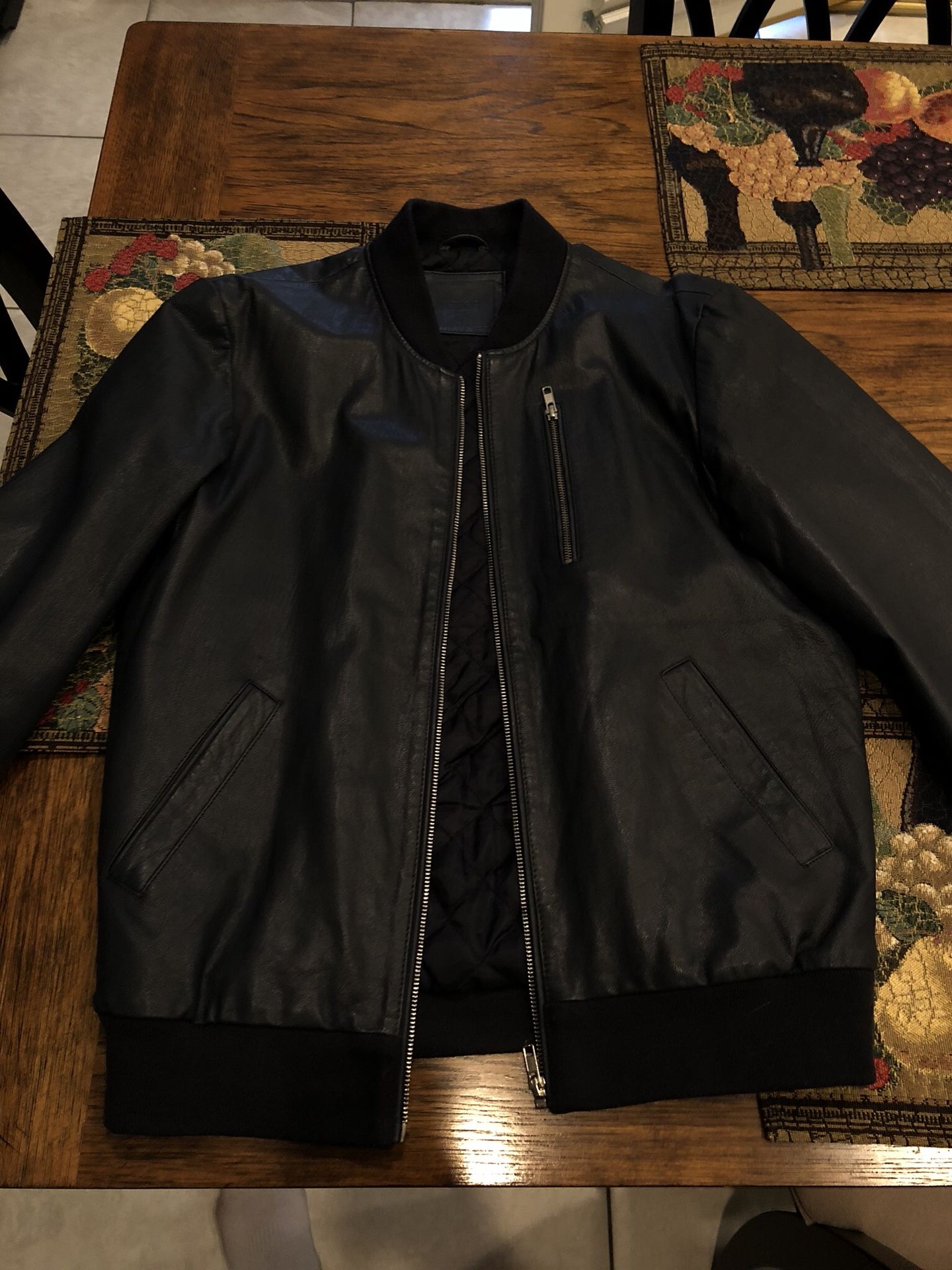 Real Leather Jacket in navy blue color, barely worn and nice quality leather, size M.