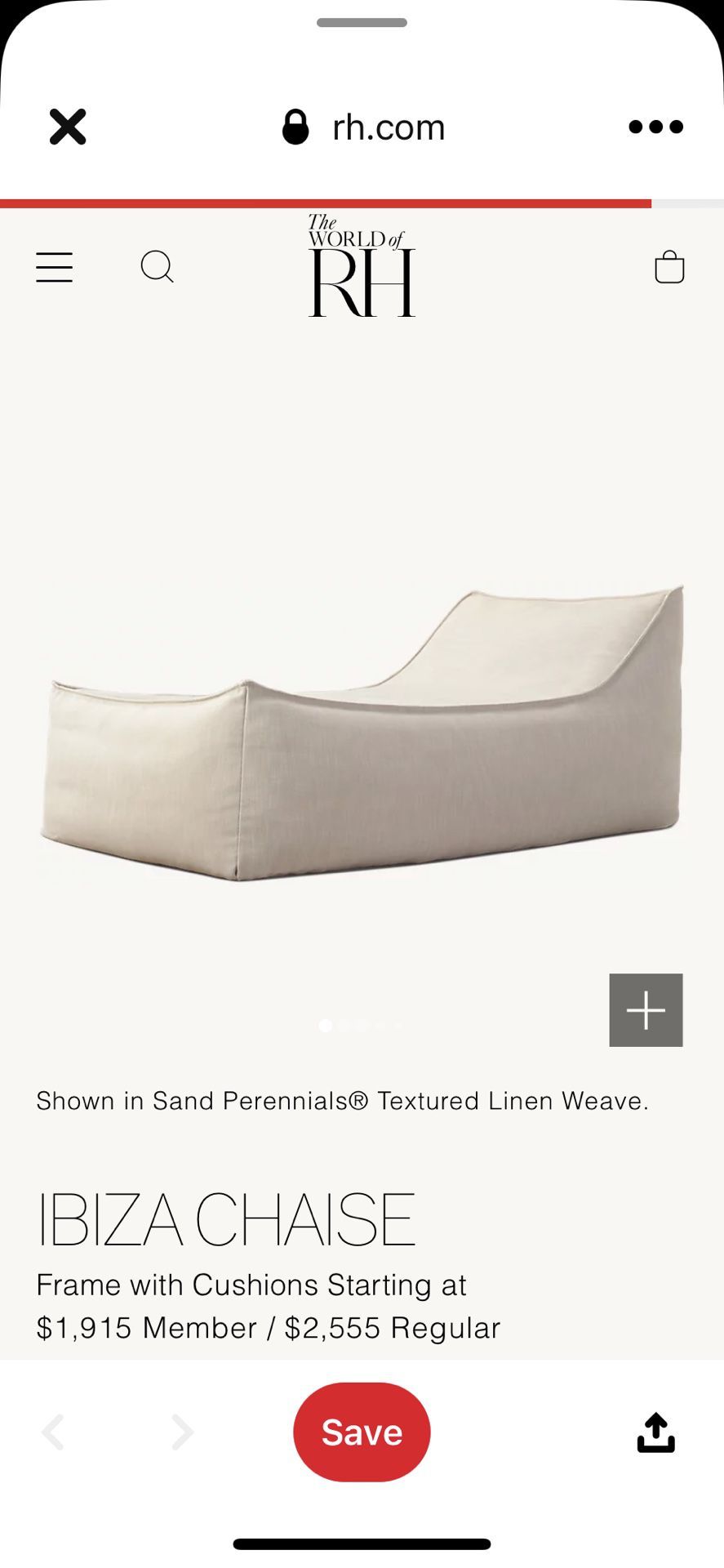 Restoration Hardware Chaise. Can be used outdoor or indoor. In white. Has zipper so can be taken out and washed in washing machine.