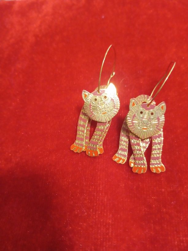This purr fect little pair of dangling cat earrings are movable, 3D, multicolor accent, and gold plated. Cute accessory to any outfit. Perfect gift for ladies. See our page for other unique and quality items.