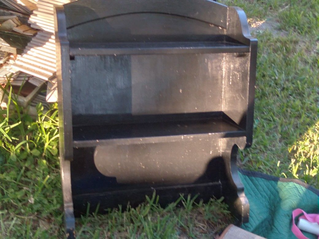 Beautiful Vintage black stand in amazing condition was used to hold pictures and wad the centerpiece in my grandma's house. Was her favorite piece of furniture. I'm asking $20 it's definitely worth more