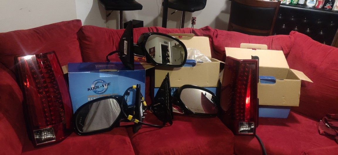 3 door mirrors for 07 Escalade...I replaced with new bc the folding motor went out...turn signals in them and light on bottom still work ..one is brand new...and a set of tail lights also...make an offer if u want everything