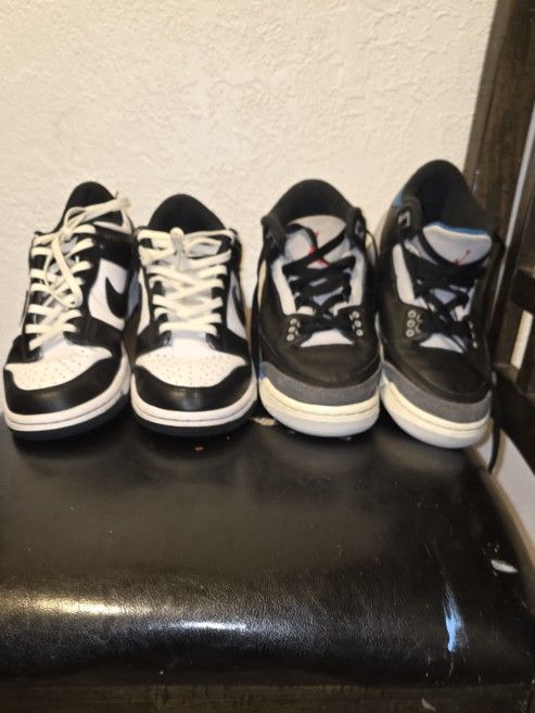 Two authentic youth Nikes — Nike Dunk Low (US 5.5Y) + Air Jordan 3 IB8968‑004 (US 4Y, “Rare Air”). Gently used with normal wear; shoes only. See photos for size tags and soles. Pickup / Payment: Local pickup in South Daytona; cash