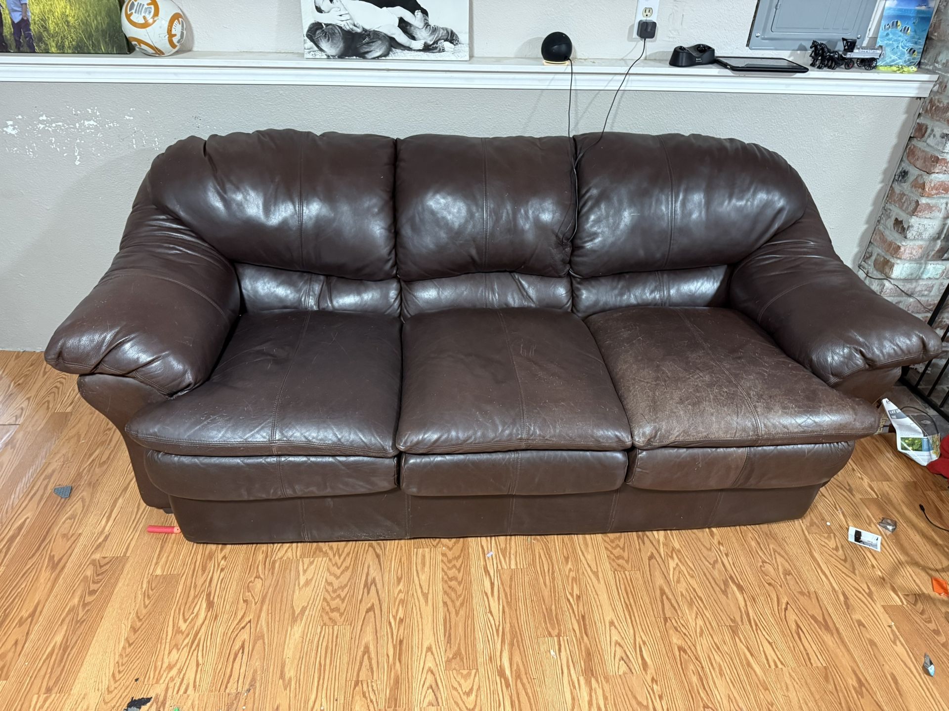 We have a three seat leather couch, and a set of leather electric recliner couch and love seat available to a new home. We have a dog but she wasn’t allowed on the furniture. No cats. No smoking.