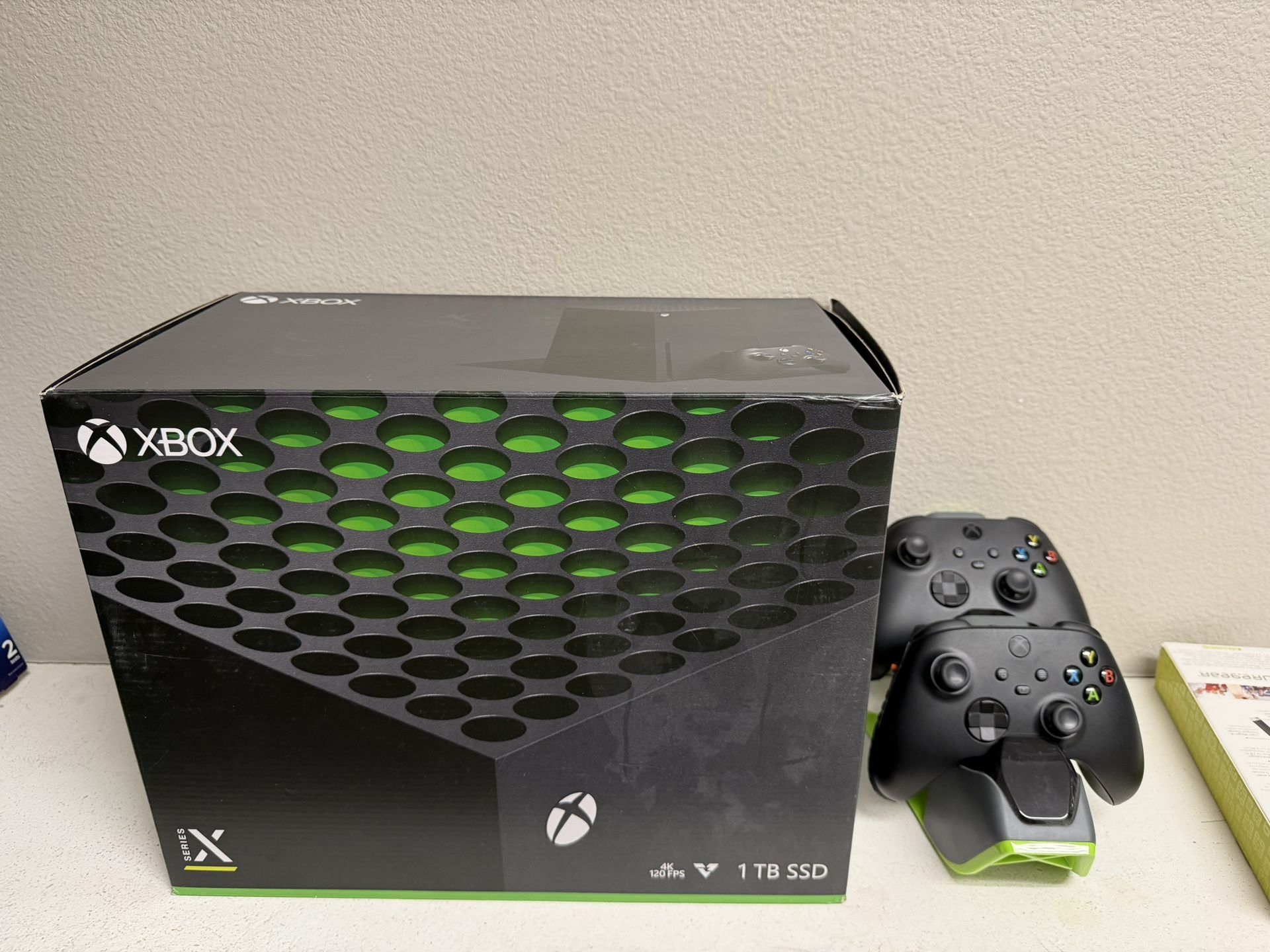 1TB SSD Xbox X series for sale. My son was more into his gaming computer than this system so it was primarily used for watching spectrum whenever he did watch tv. Comes with remote dock for easy charging and 2 remote controls that are in impeccable condition. DO NOT ASK FOR LOWER THAN ASKING PRICE. I will just respond with βπ€£β if you choose to do so.