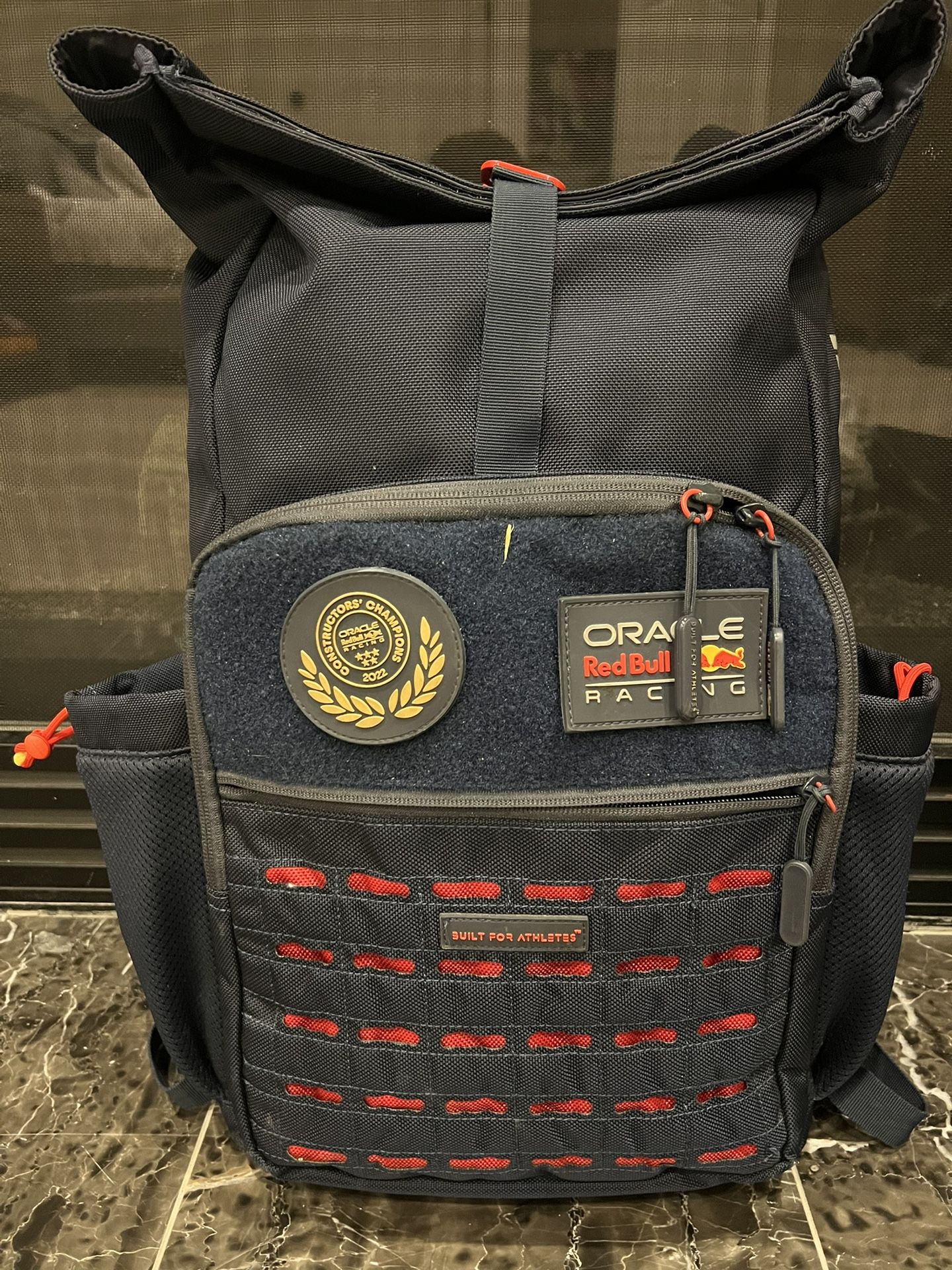 F1 racing backpack. Comes with redbull and oracle racing F1 Velcro connectable patches.