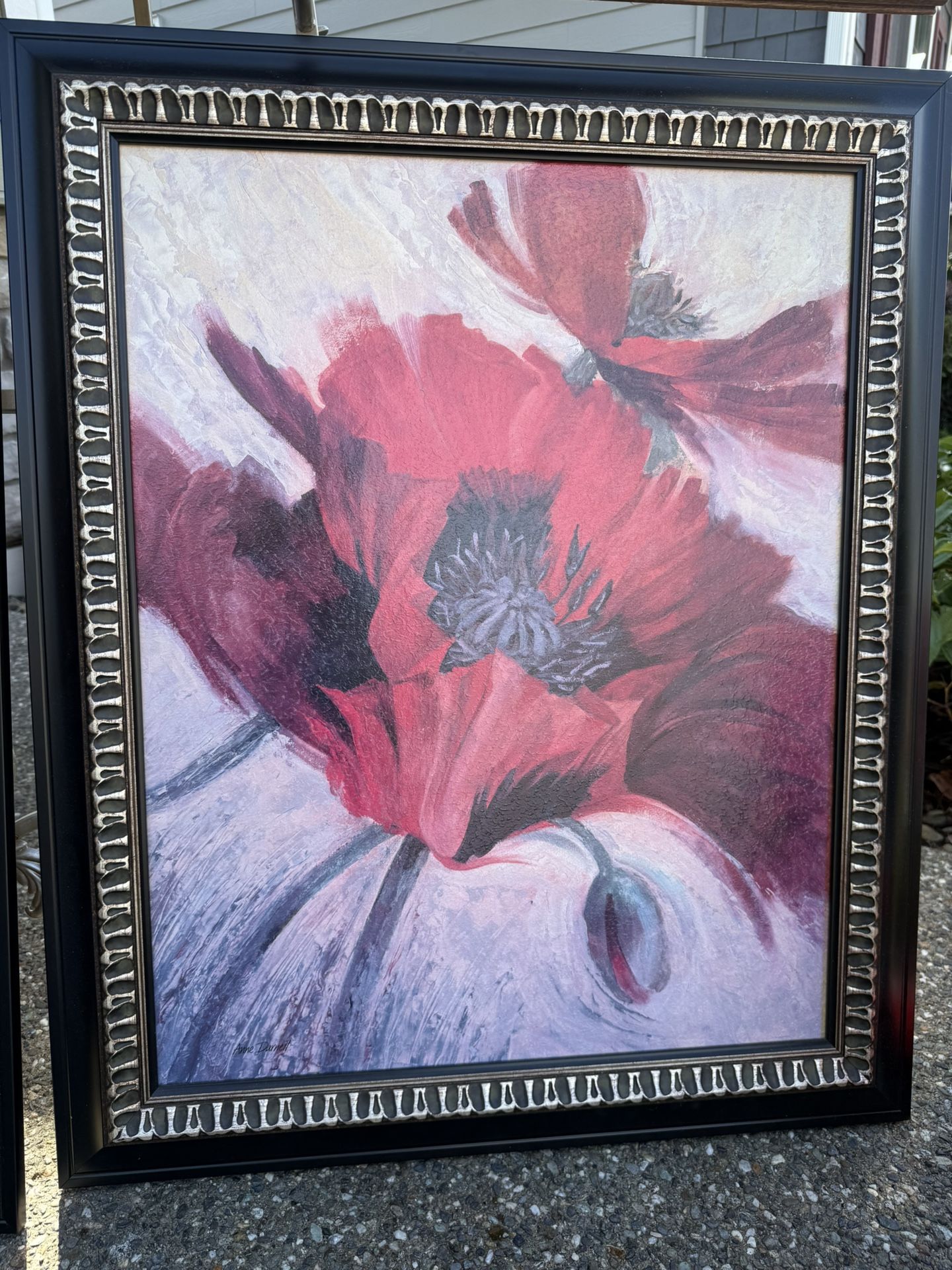 Two red poppy pictures in frames BOTH for $30 28x34 Frames are black w gold