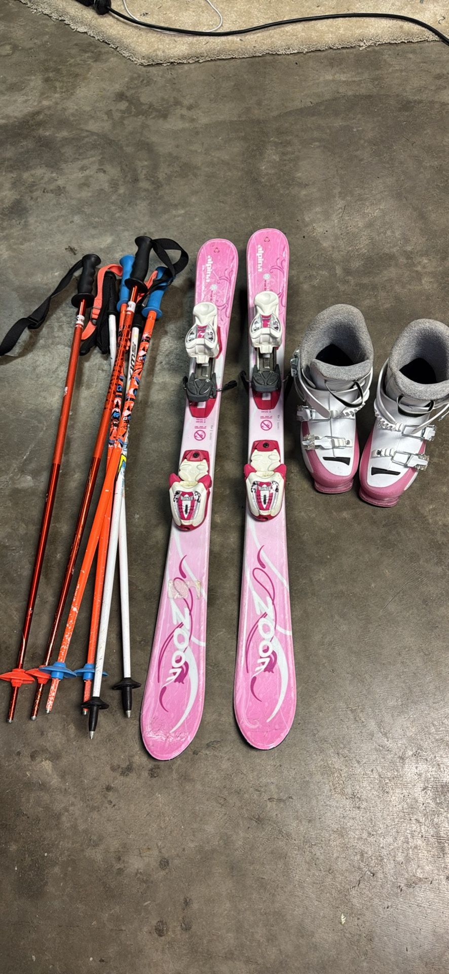 Skis For Girl 100 Cm Alpine With Bindings And Boots Size 2, 3, 4 And Poles