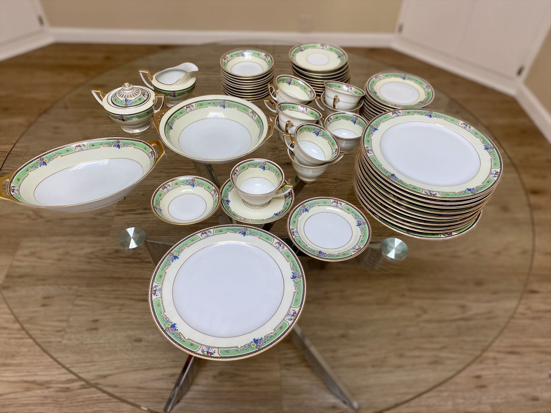 BEAUTIFUL Thomas Bavaria Emerald Green China set $200.00 11 Dinner plates 12 Dessert plates 12 saucers 10 tea cups 12 ice cream plates 1 serving platter 1 salad bowl 1 sugar bowl w/ lid 1 creamer