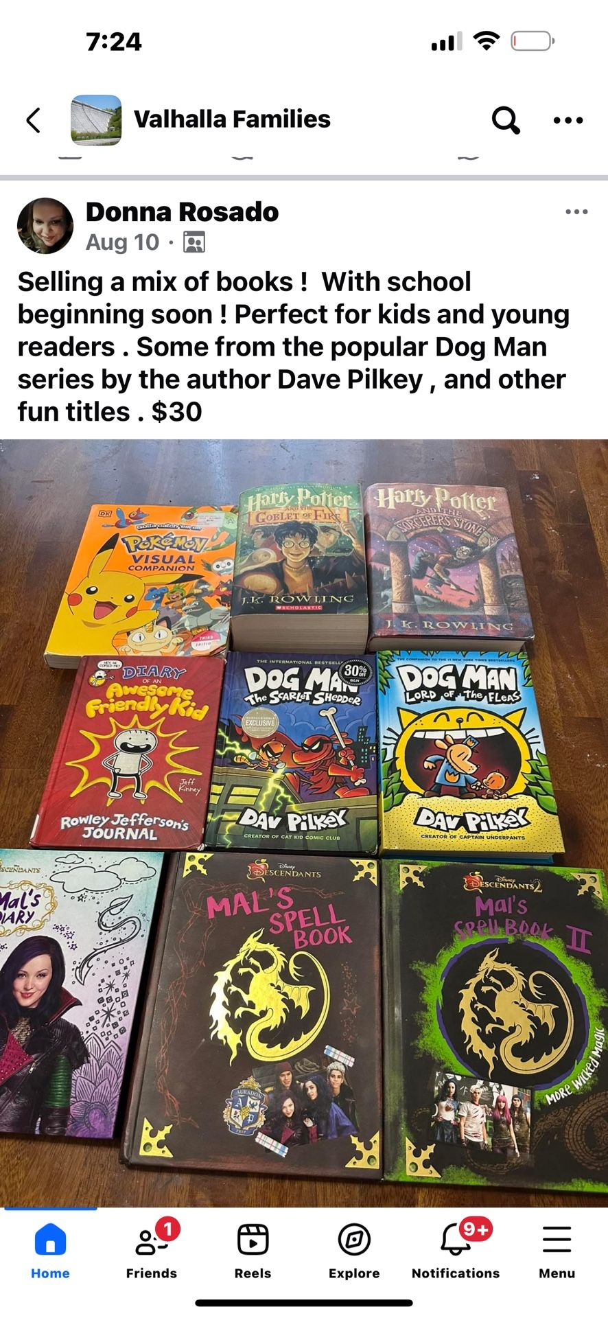 Selling a mix of books . With school starting soon … Perfect for kids and pre teen readers . Some from the popular Dog Mann series by author Dave Pikley and other fun titles .