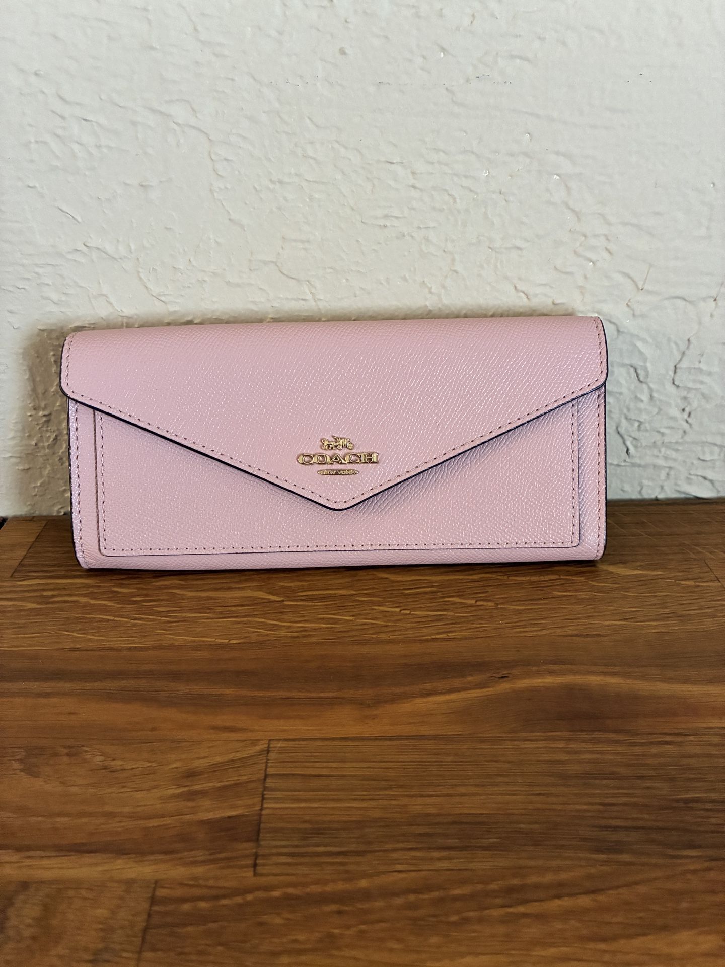 Pinka long wallet by Coach. Has zippered coin slot on the back. In great condition. Very clean, no damage.