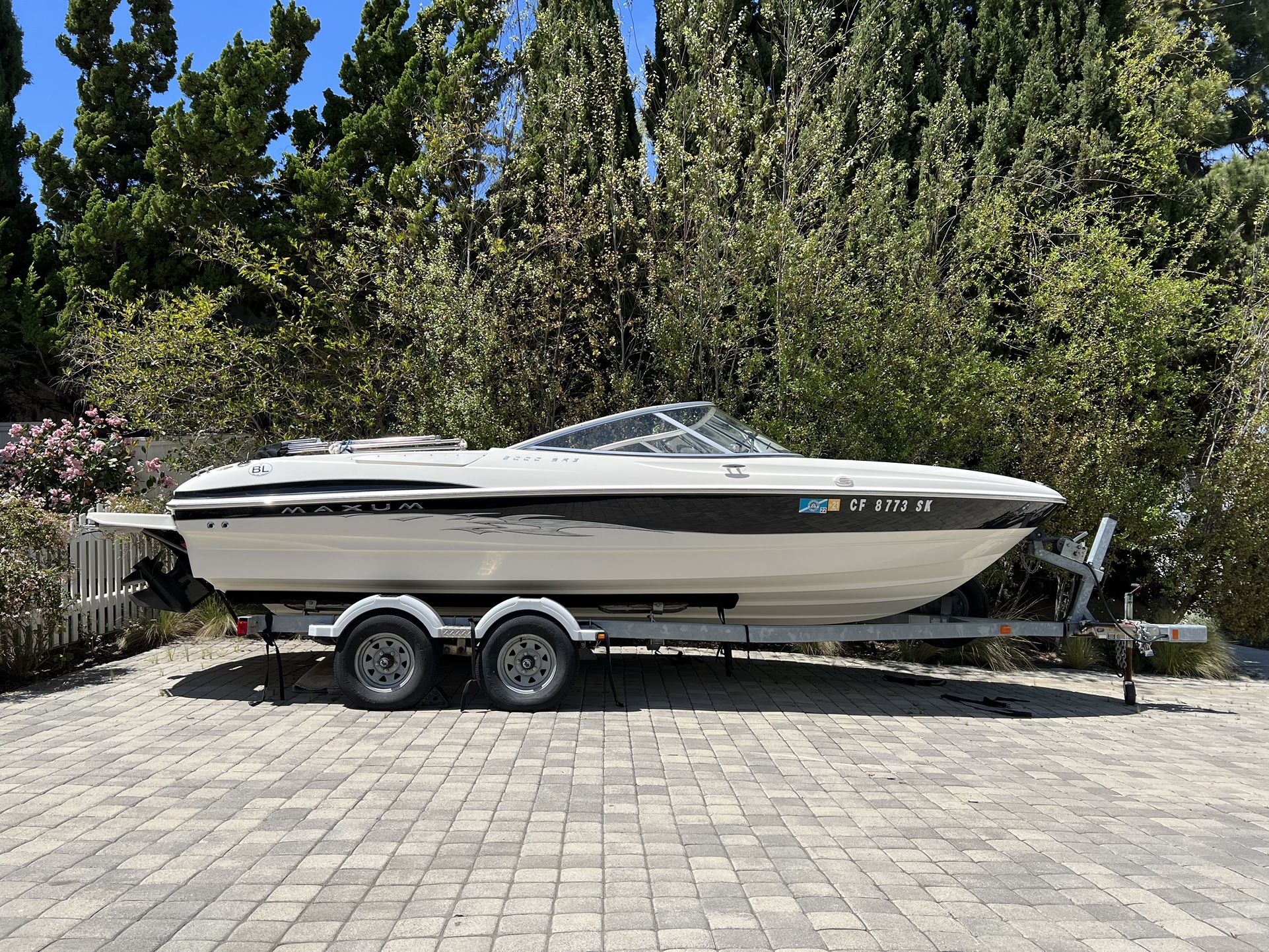 Very clean (inside/out) 2006 Maxum 20’ ski boat w/two foot fiberglass skit step. 5.0 Mercruiser w/215 hrs on it. Runs great! White/black gel coat. White/grey interior. Black bikini top (great shape). Black weather tech cover. Tandem axle trailer. New brake pads/drum.