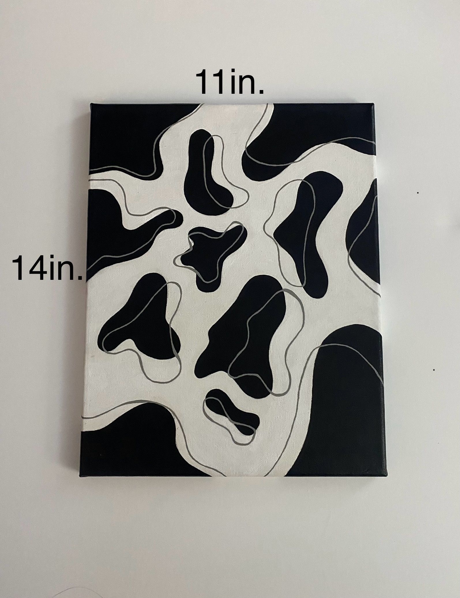 11 inch by 14 inch abstract cow print painting. Black, White, and Gray