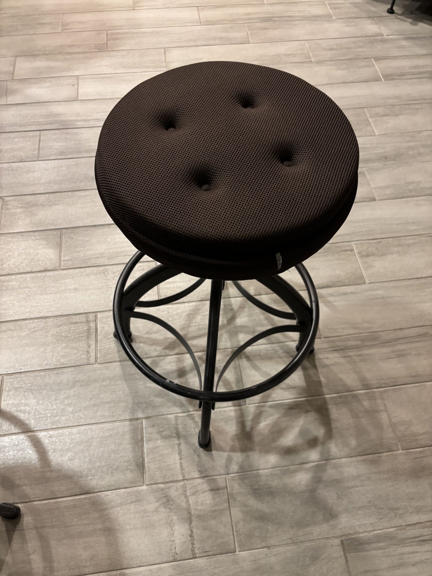 These bar stools are in excellent condition. Very sturdy and strong. The memory foam cushions are included. The size is round 14” . Height adjustable from 26” to 32”. Excellent addition to your home. Price is single chair. Both for $120. Purchased at American Furniture Warehouse for @ $118 + tax each!