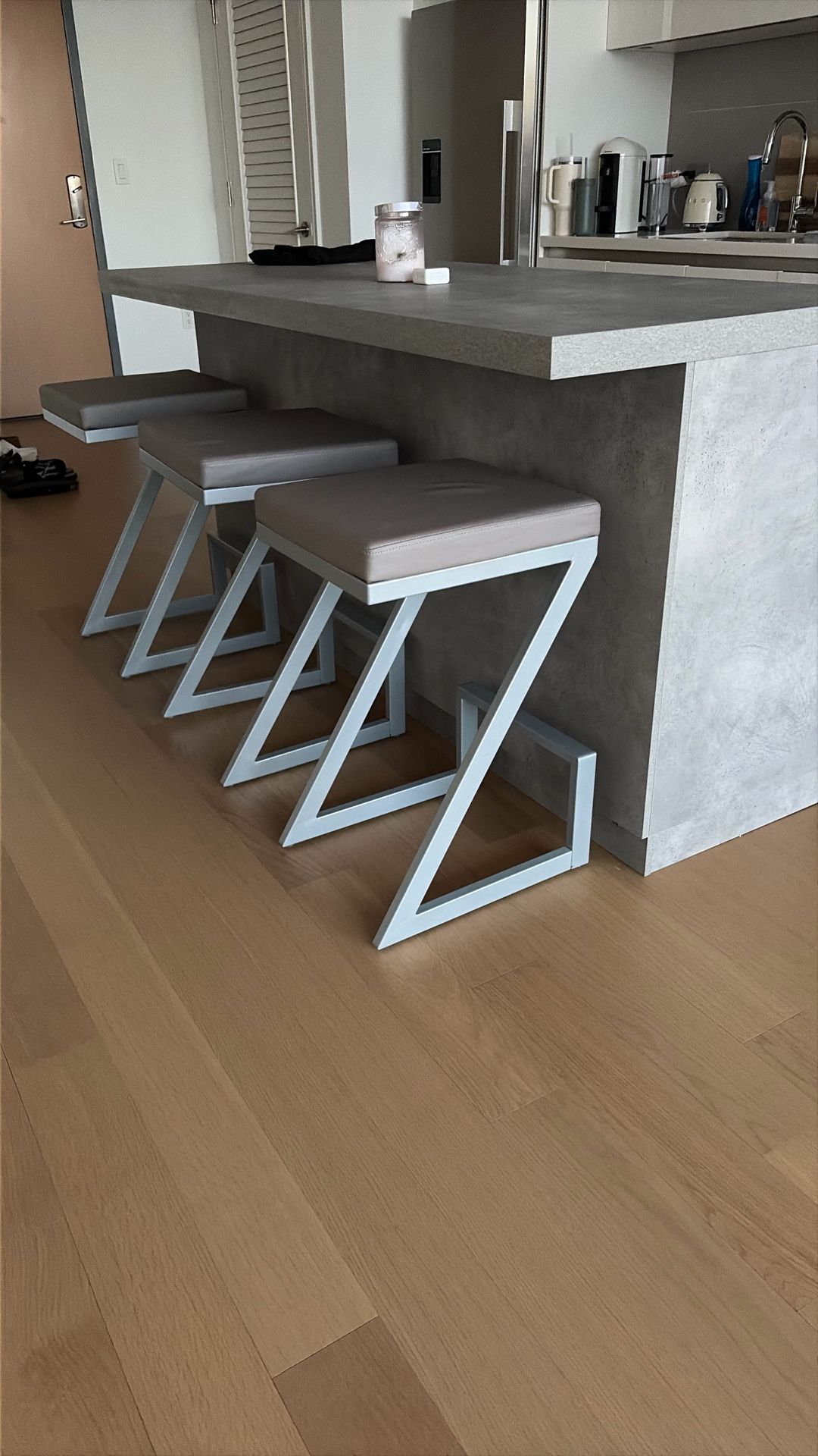 Set of 3 bar stools, dimensions are for a standard island or standard peninsula. All three are included in this price. They are all brand new condition, one stool is just missing (1) rubber piece that goes under the corner of the leg to slide on the floor.