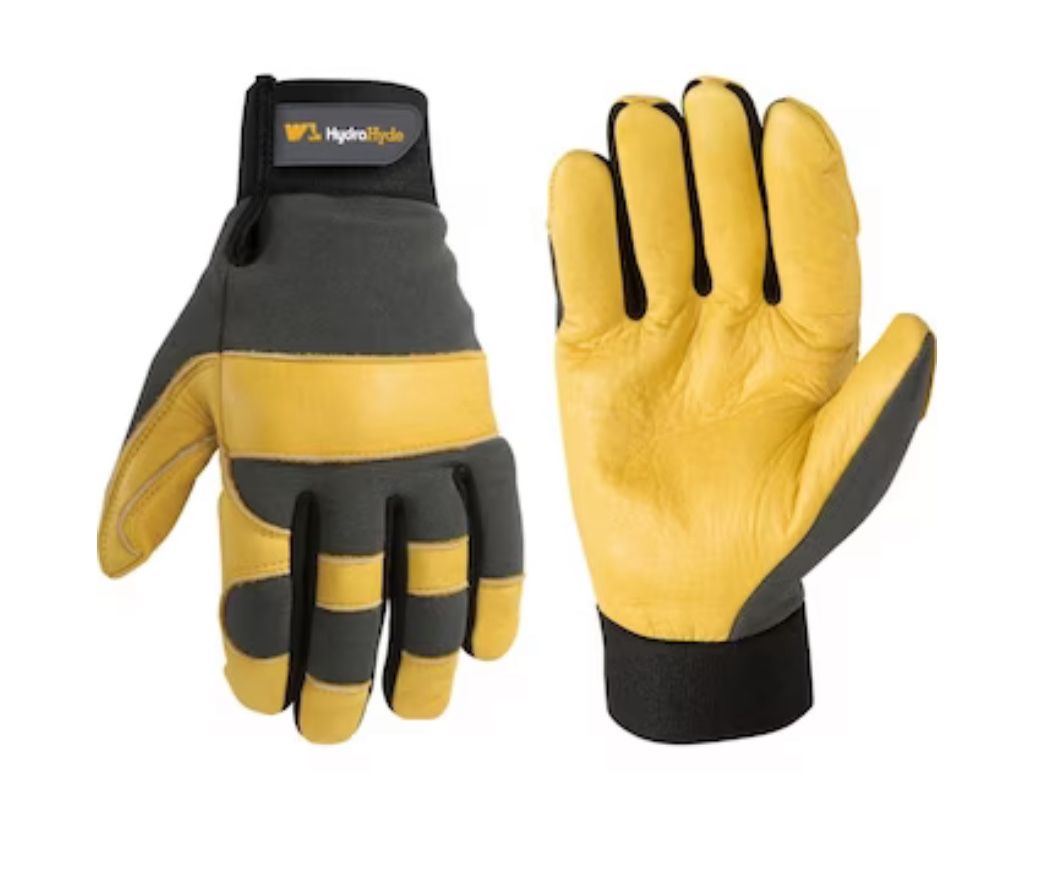 Wells Lamont Large Leather Utility Gloves, (1-Pair) Brand New!!!! Not in original packaging!!! Wells Lamont HydraHyde hybrid leather gloves are water-resistant and offer the hand protection you would expect from an all purpose work glove. The HydraHyde® leather tannage last the life of the gloves and does not wear off. It also helps to keep the gloves soft even after repeated use in wet applications. The water-resistant stretch fit spandex back along with the HydraHyde® leather knuckle provide a tighter, higher dexterity fit and feel, making the gloves suitable for a variety of applications. These gloves are water repellent, but not waterproof. HydraHyde water-resistant genuine grain cowhide leather Stretch fit water repellent spandex back Hi-dexterity fit and feel HydraHyde grain cowhide leather knuckle strap protects back of hand key area Adjustable wrist closure keeps out dirt and debris Ideal for construction, outdoor work, maintenance, power equipment and tools, landscaping, and DIY projects