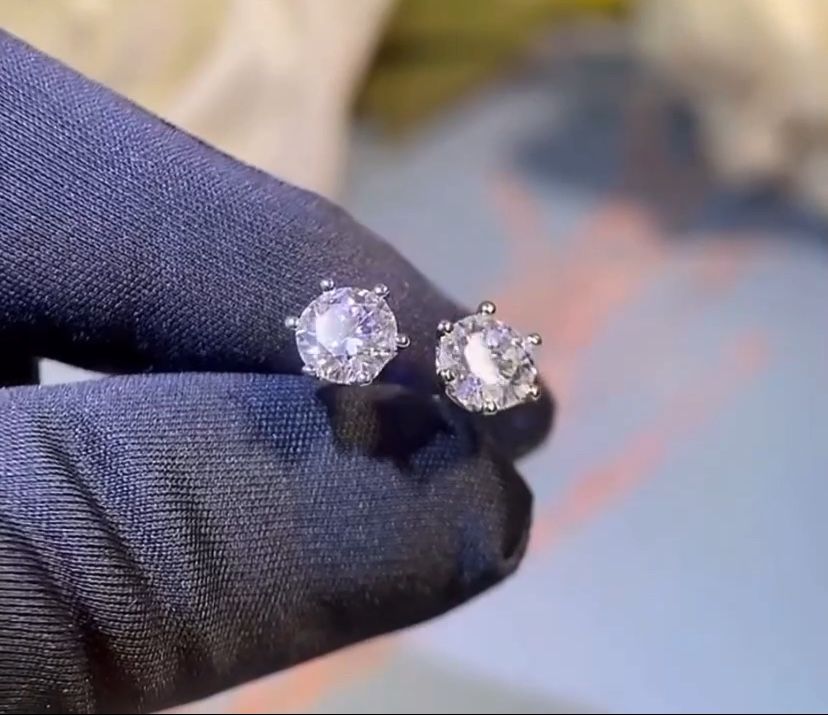 2, 6.5mm D Color, Excellent Cut Moissanite Diamond Platinum plated Solid Sterling Silver Screw Back Earrings, stamped 925 are gorgeous! Each earring is 1 carat. Handmade Fine Jewelry Comes with GRA CERTIFICATES Also Available in .6CT & 1CT on my page Price is Firm