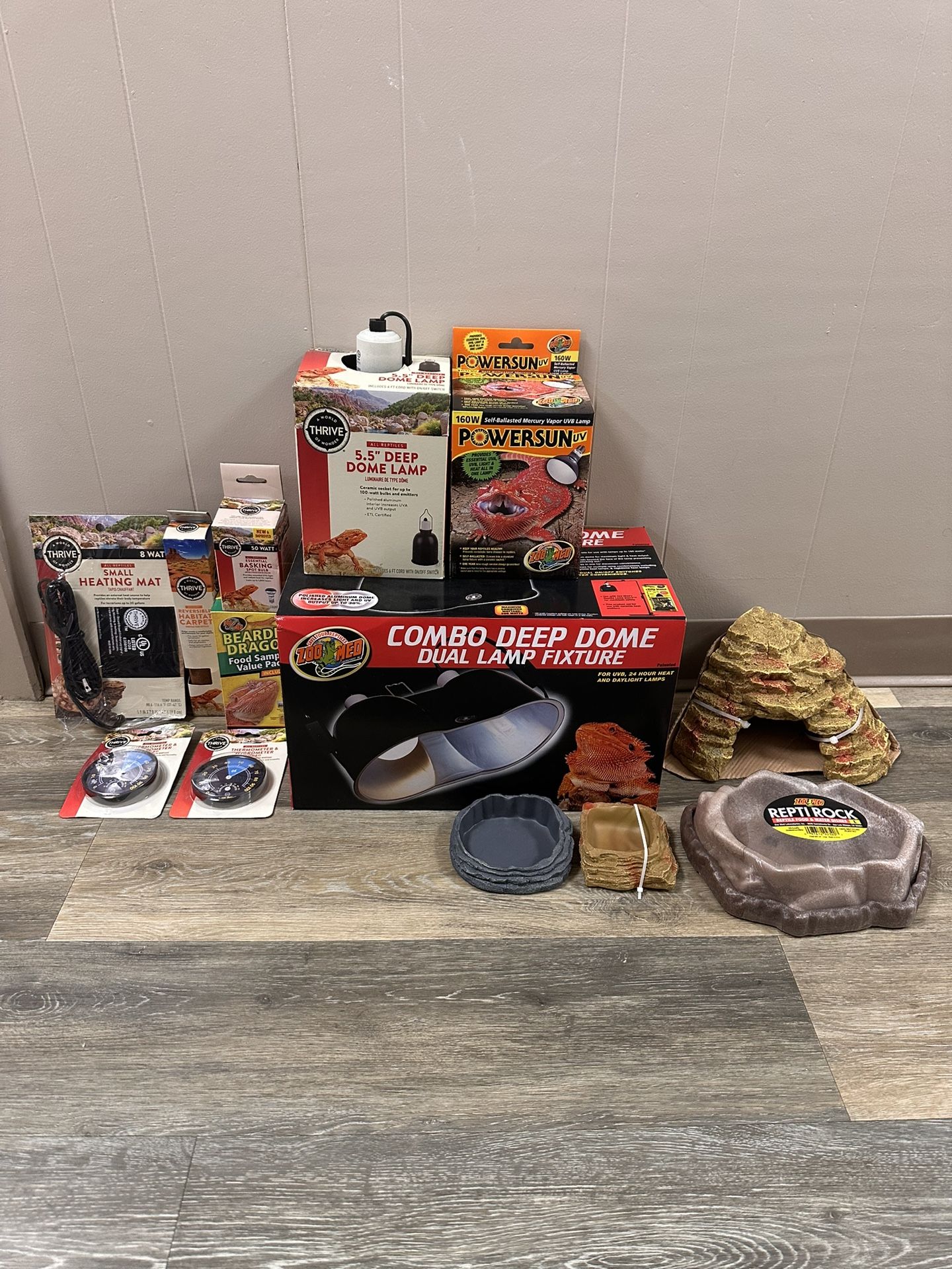 I have a bundle of various reptile tank supplies basically everything you’d need for the initial setup. Brand new, nothing was used.