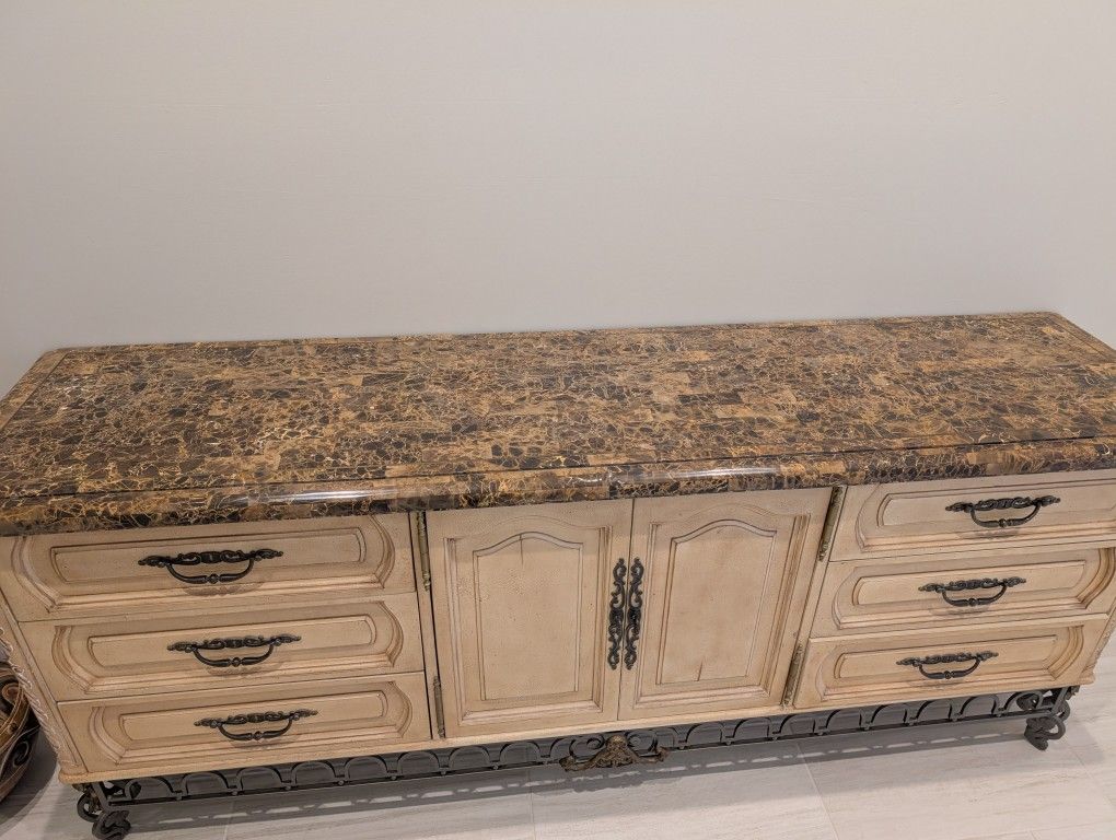 Marble top antique Victorian design dresser. 9 drawers total. Can be used as a sideboard. Like new condition. Solid and very heavy piece. Legs are metal.