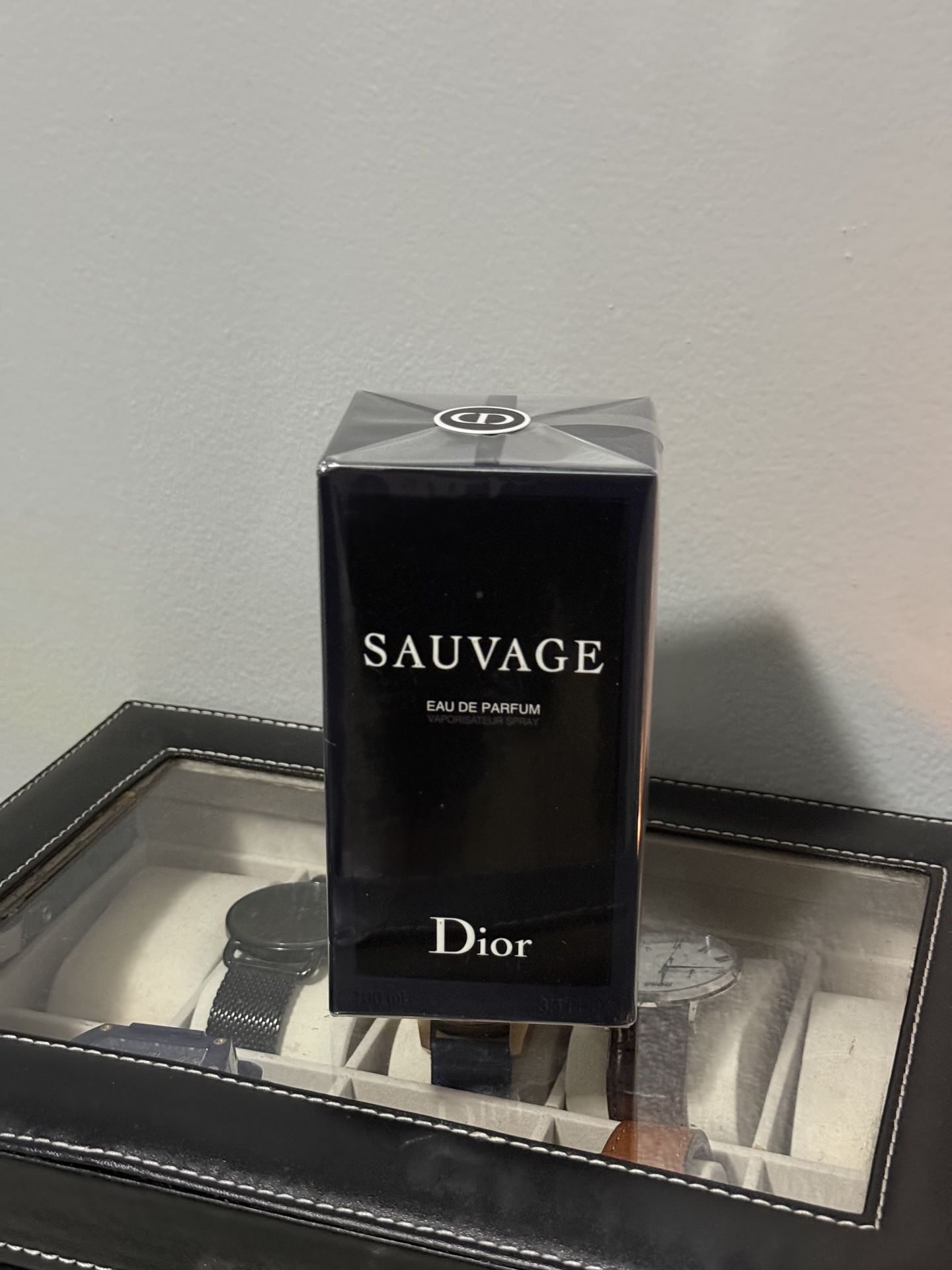 Sauvage Dior Eau de Parfum 100ml/3.4oz - A fresh, energetic scent with top notes of bergamot and lavender, middle notes of ambrox, and base notes of vetiver, patchouli, and cedarwood. Perfect for everyday wear, especially during spring and summer.