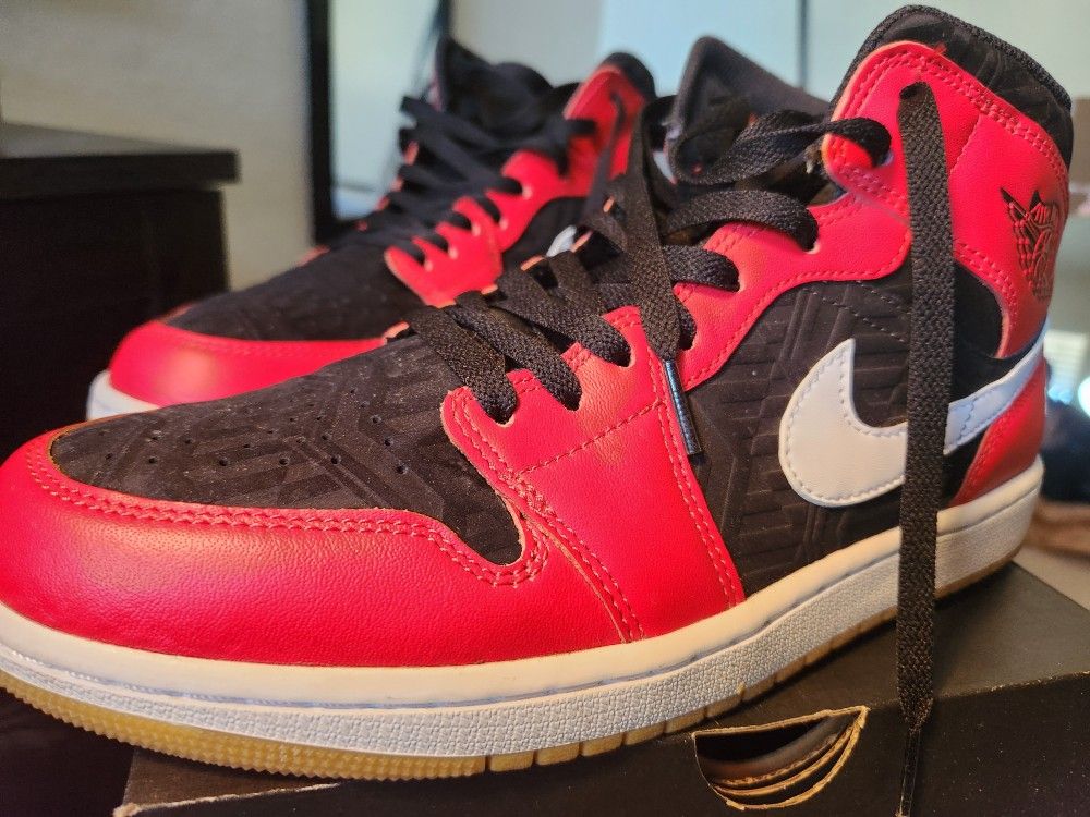 Like size 10 Jordan 1 Fire Red/White & Black. Used for an event.