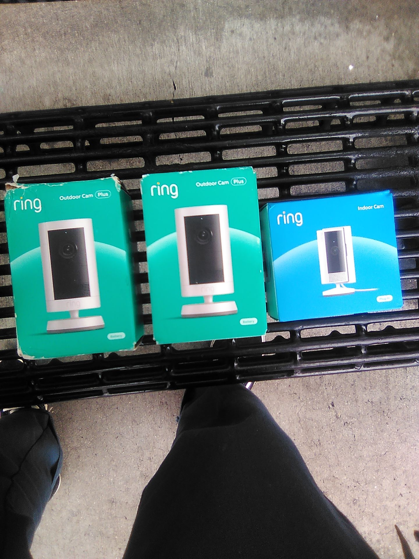 2 outdoor brand new ring cameras and one indoor brand new in box