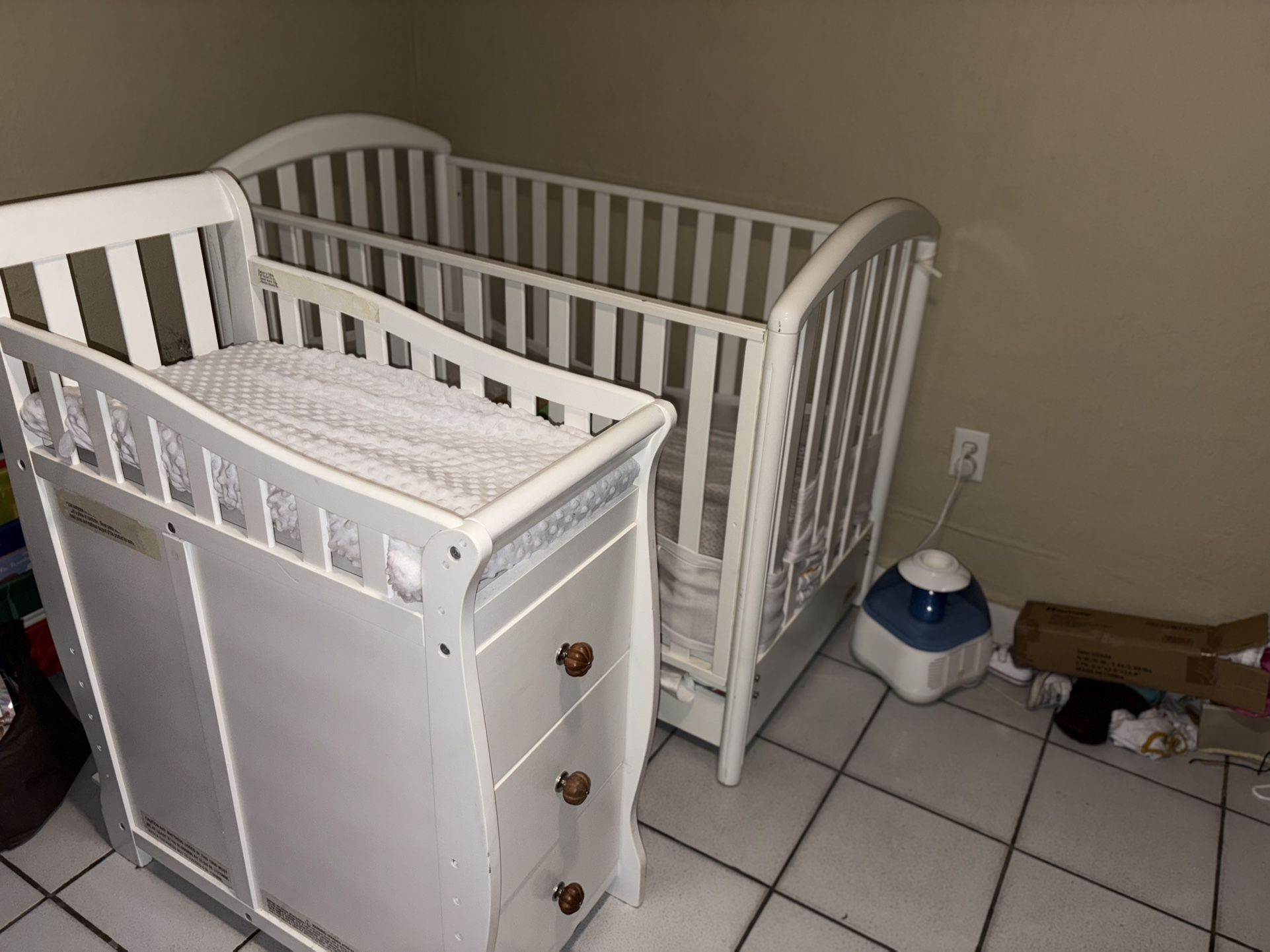 Crib and changing table set good condition contact for more pictures of the set all drawers work crib is 4ft long 2 ft wide 3ft