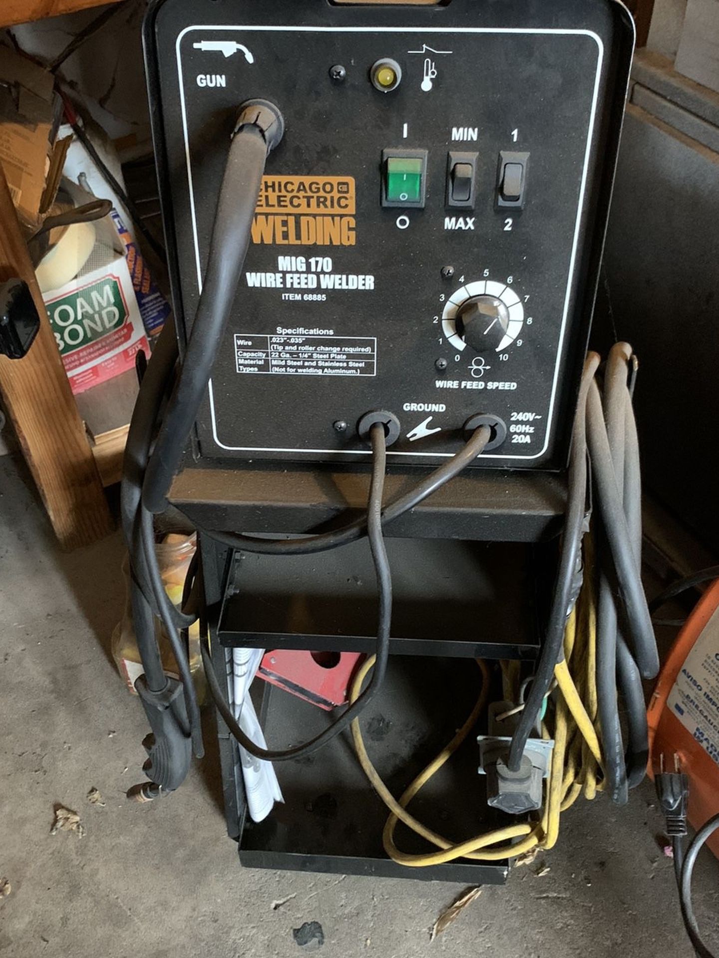 Used 3 times. It is a harbor freight brand, come with stand on wheels.